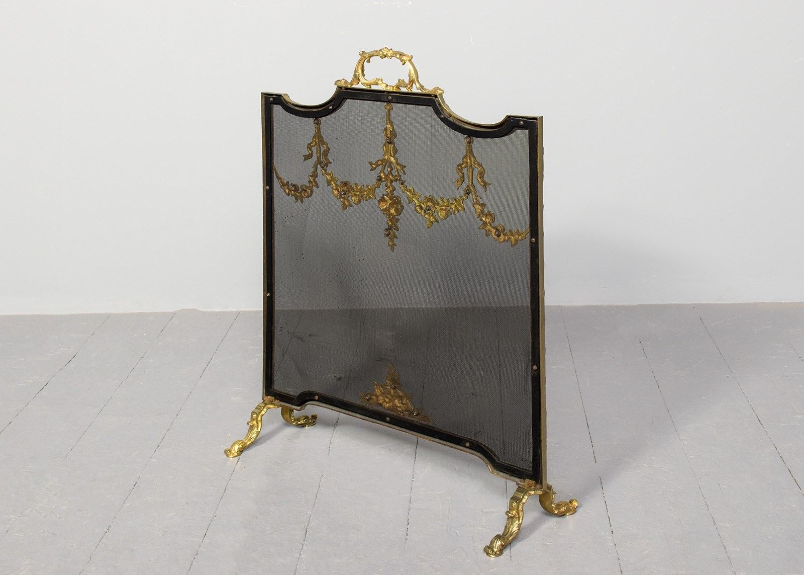 Louis XV Style Cast Brass And Mesh Fire Screen