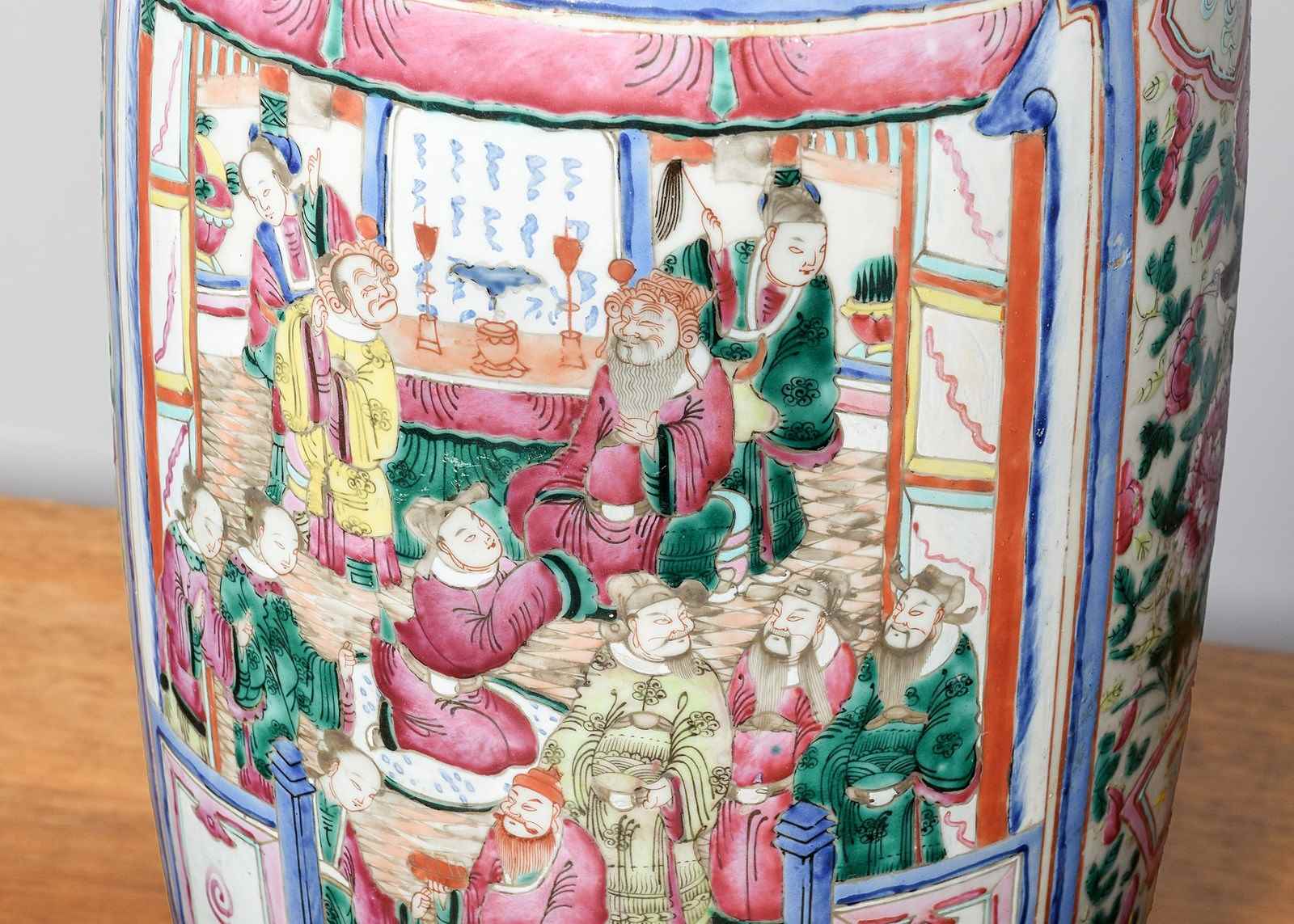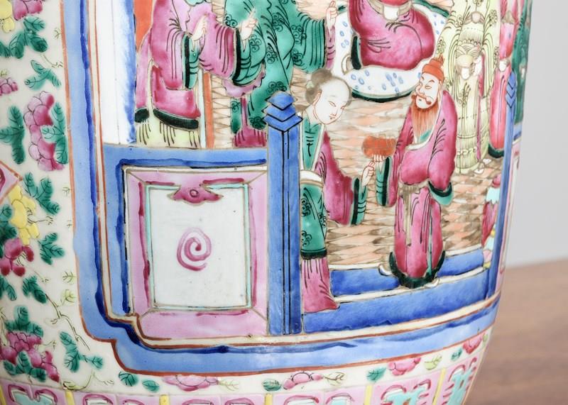 Magnificent Tall Hand-Painted Canton (Mandarin) Vase
