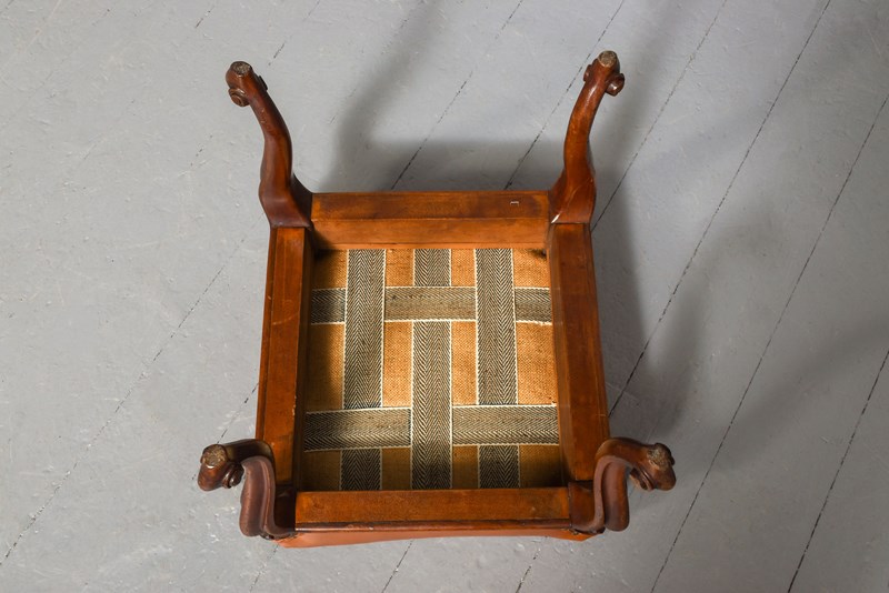 Mid-Victorian Mahogany Tan Leather Upholstered Stool On Cabriole Legs