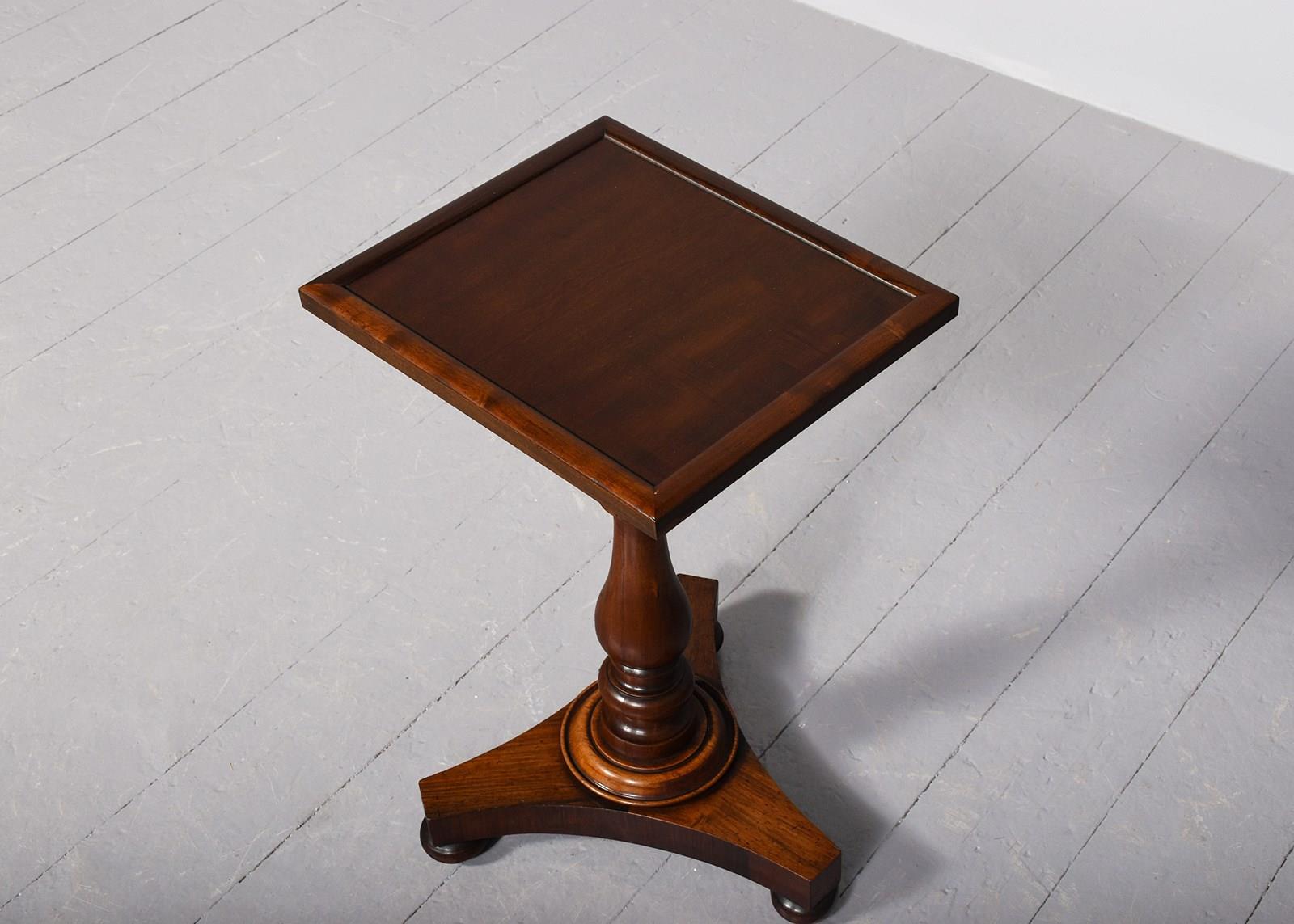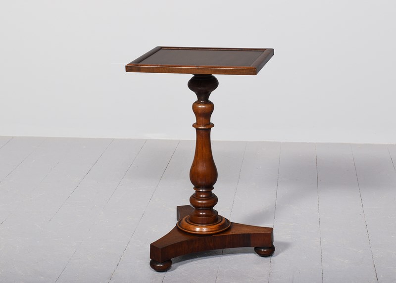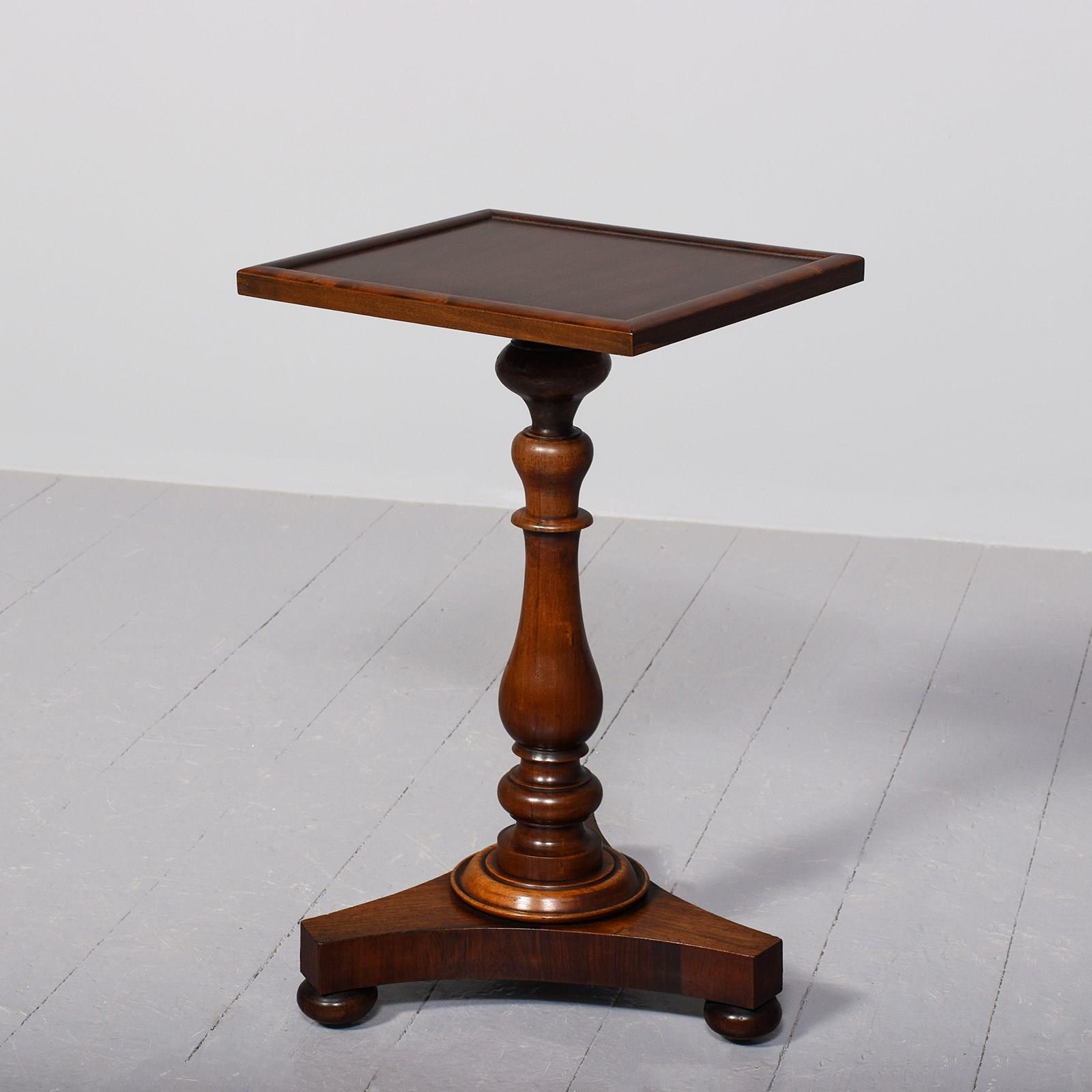 Circa 1860 (with restorations). Neat size mahogany Victorian rectangular top occasional/wine table. The rectangular top in figured Spanish mahogany with a raised moulded edge over a turned vasiform stem with a turned collar above a tripartite base over bun feet. Traditionally restored and in excellent condition.