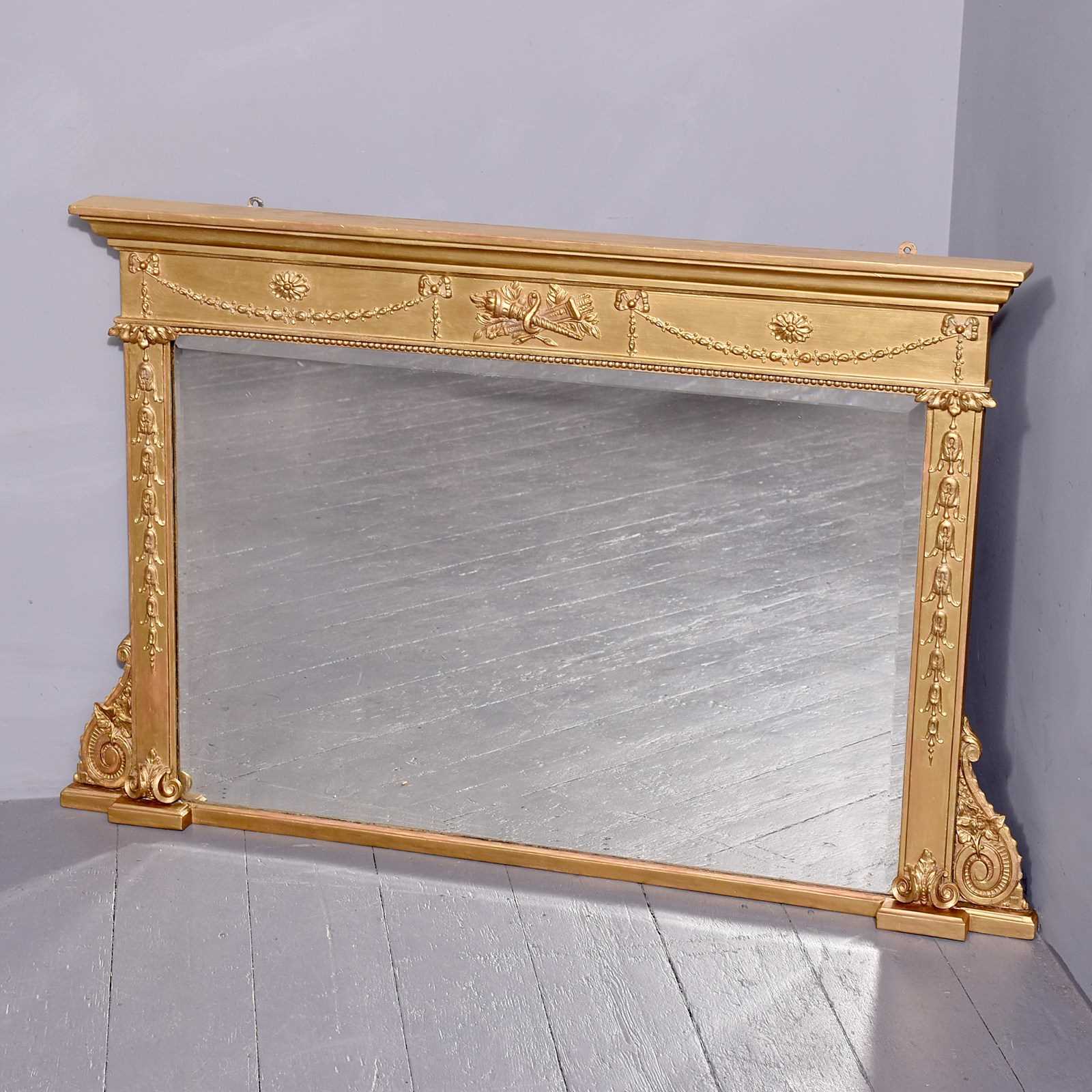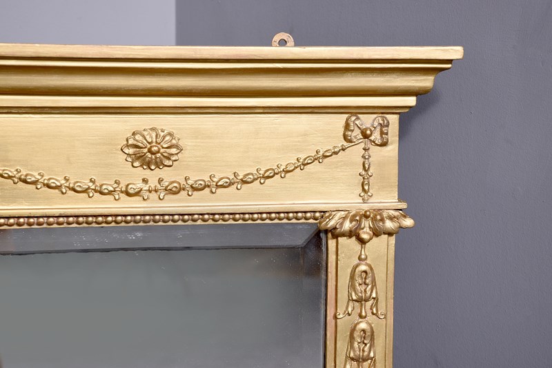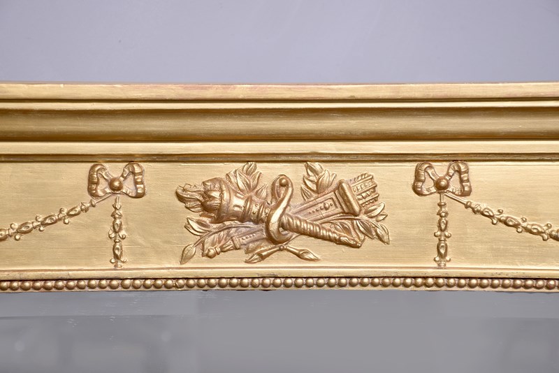 Neat Size Regency Gilded Overmantel Mirror With Neoclassical Decoration
