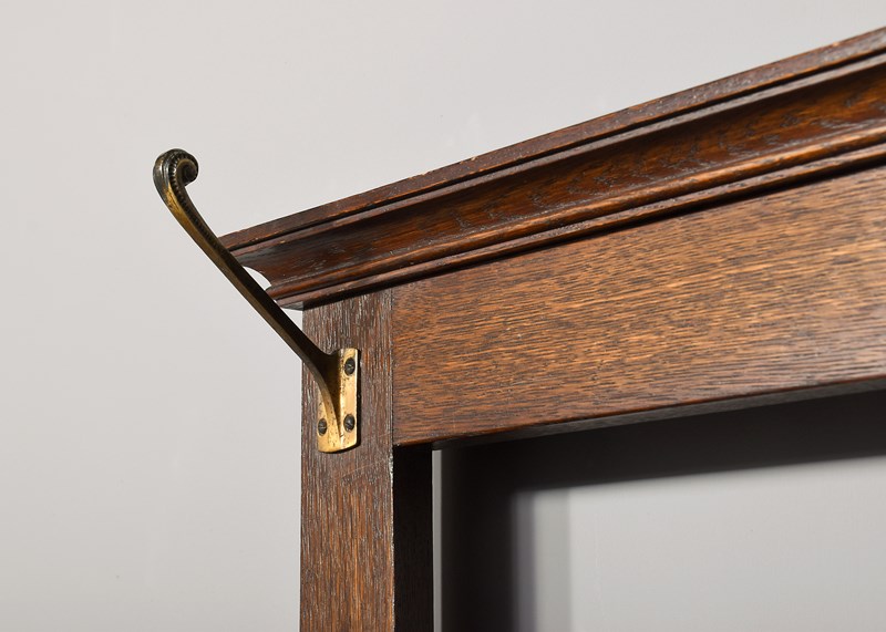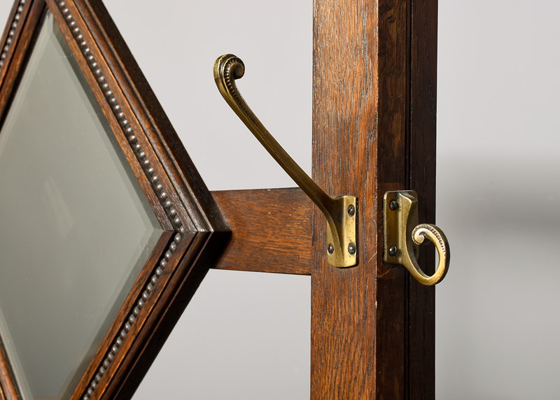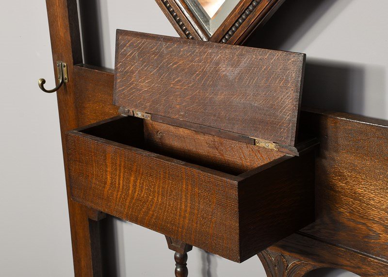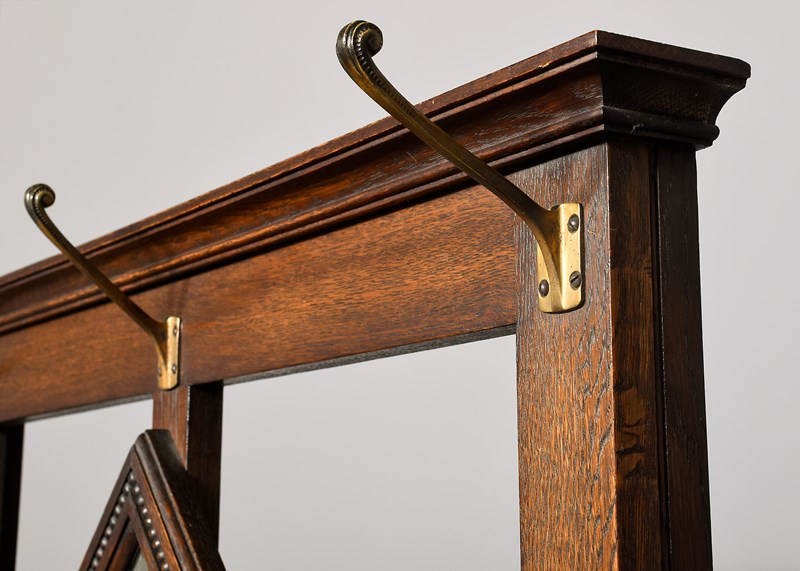Neat-Sized Arts And Crafts Influence Mirror-Back Oak Hall Stand