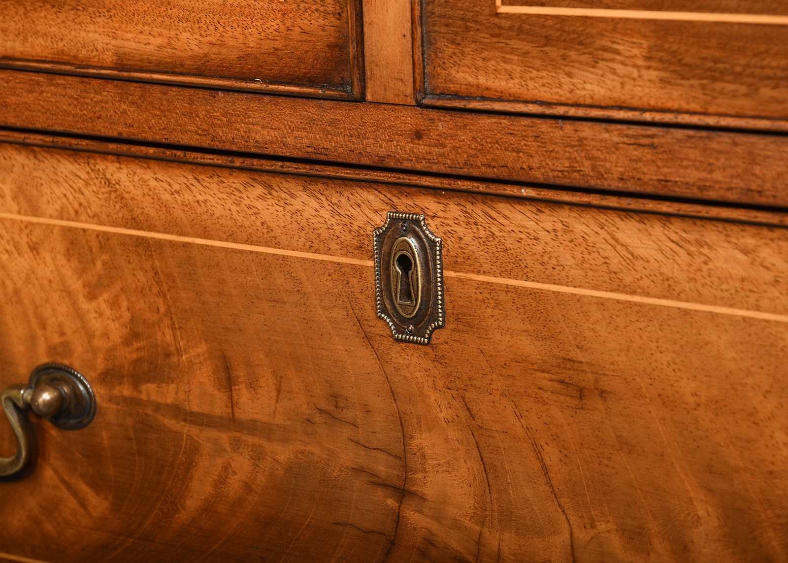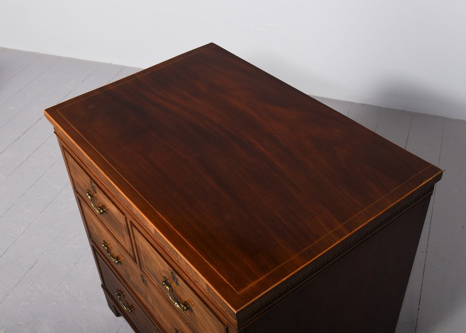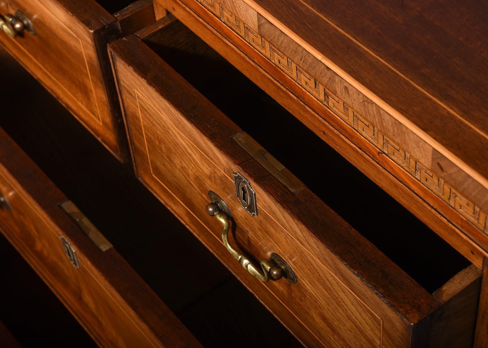 Neat-Sized, Inlaid Mahogany Regency-Style Chest Of Drawers With Greek Key Decora