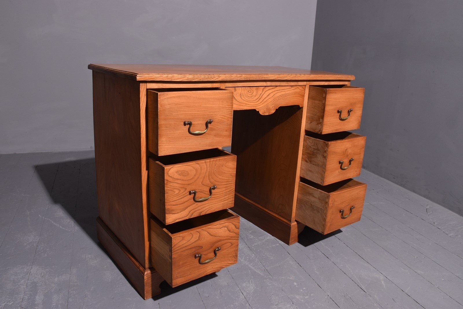 Neat-Sized Quality Figured Oak Georgian-Style Kneehole Desk