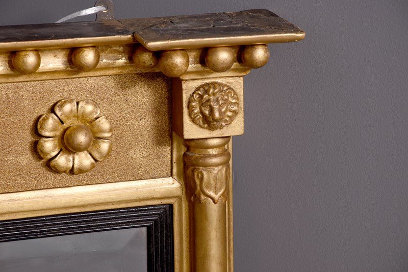 Neat-Sized Regency Giltwood Rectangular Bevelled-Edge Overmantel Mirror