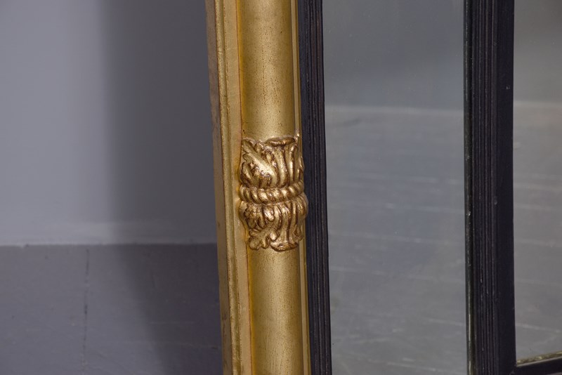 Neat-Sized, Regency Period Gilded Triptych Overmantel Mirror With Acanthus Decor
