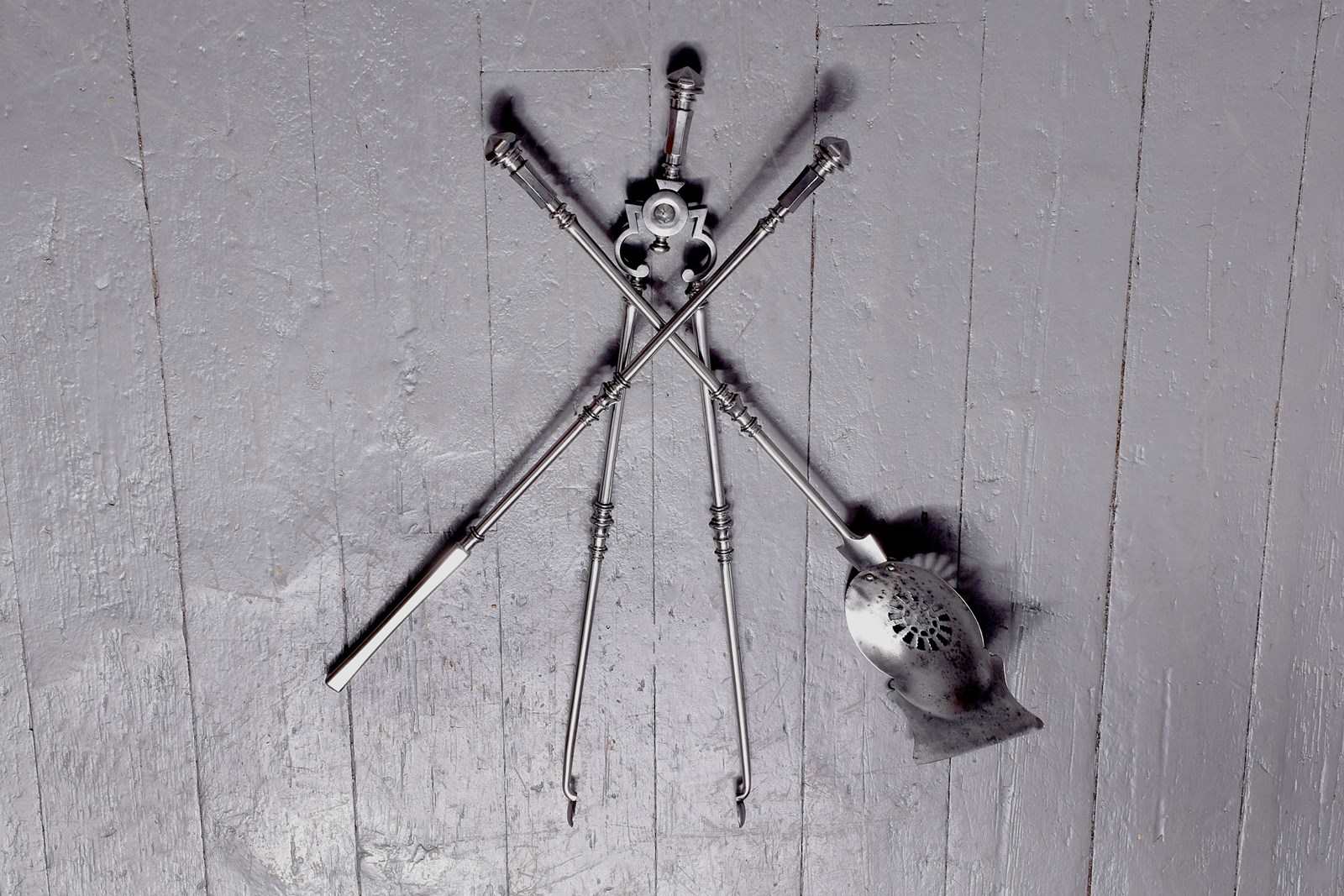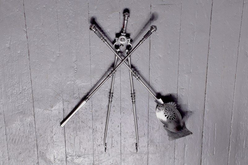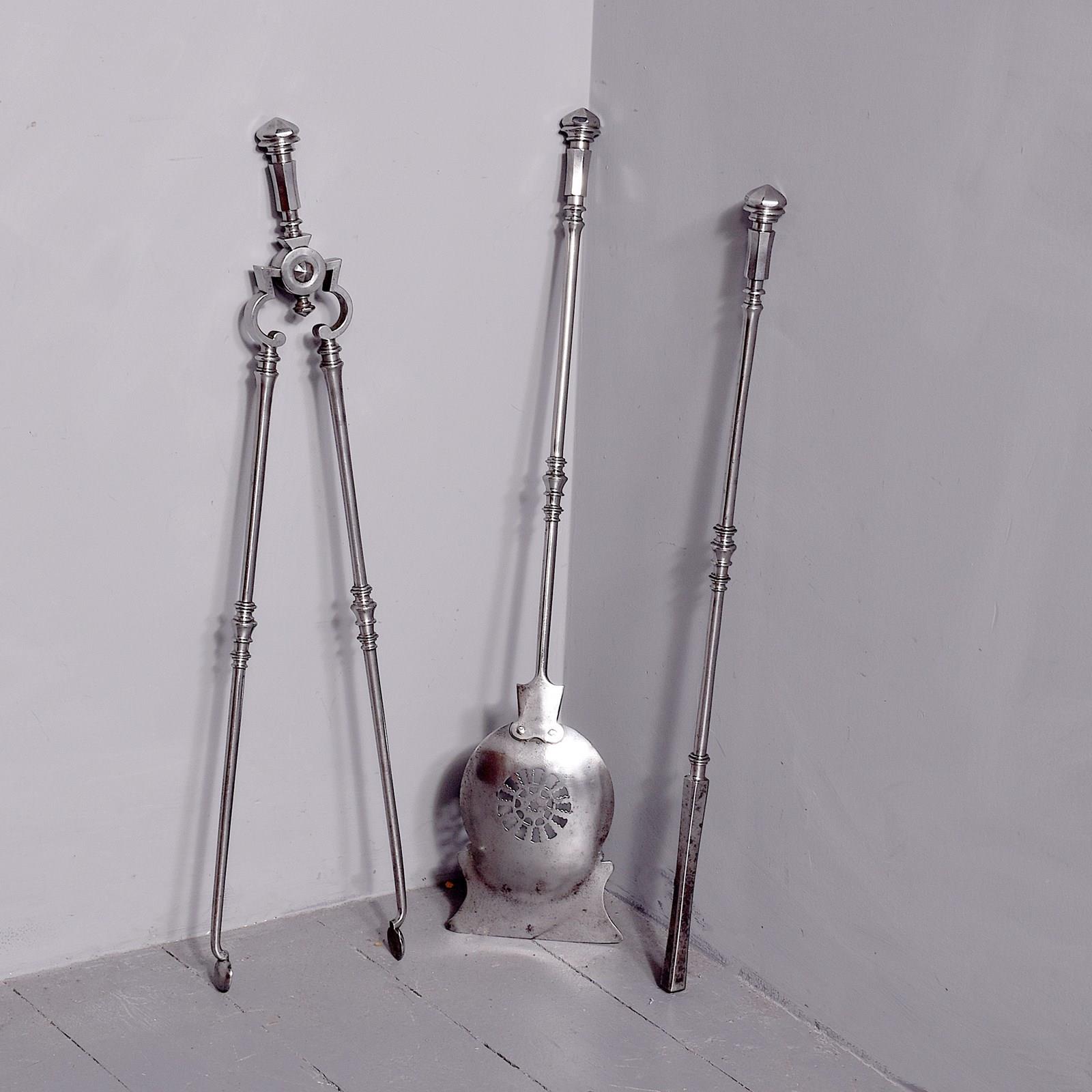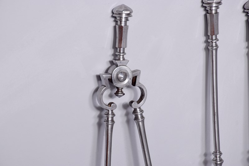 Outstanding Set Of Polished Steel Early Victorian Fire Irons