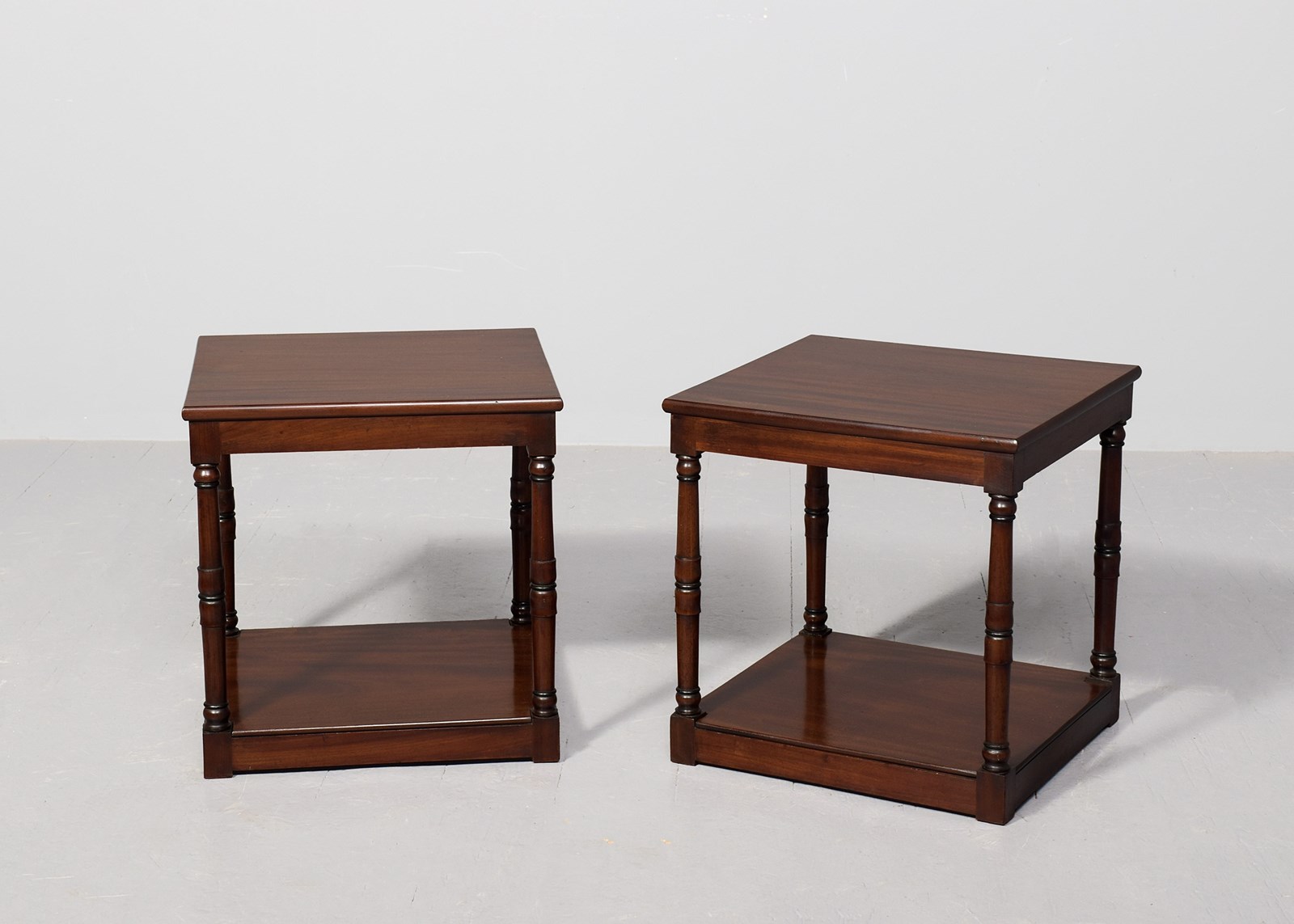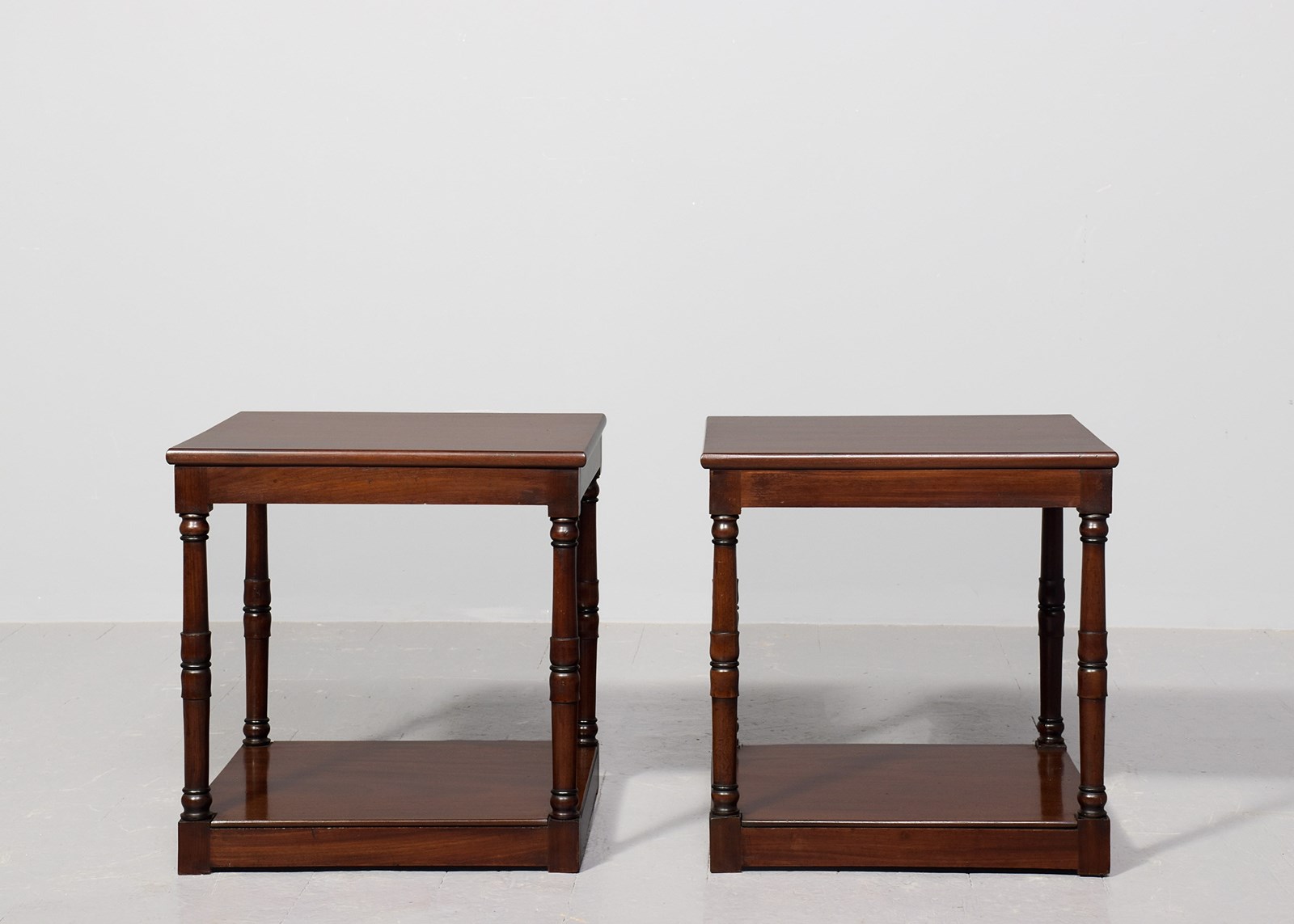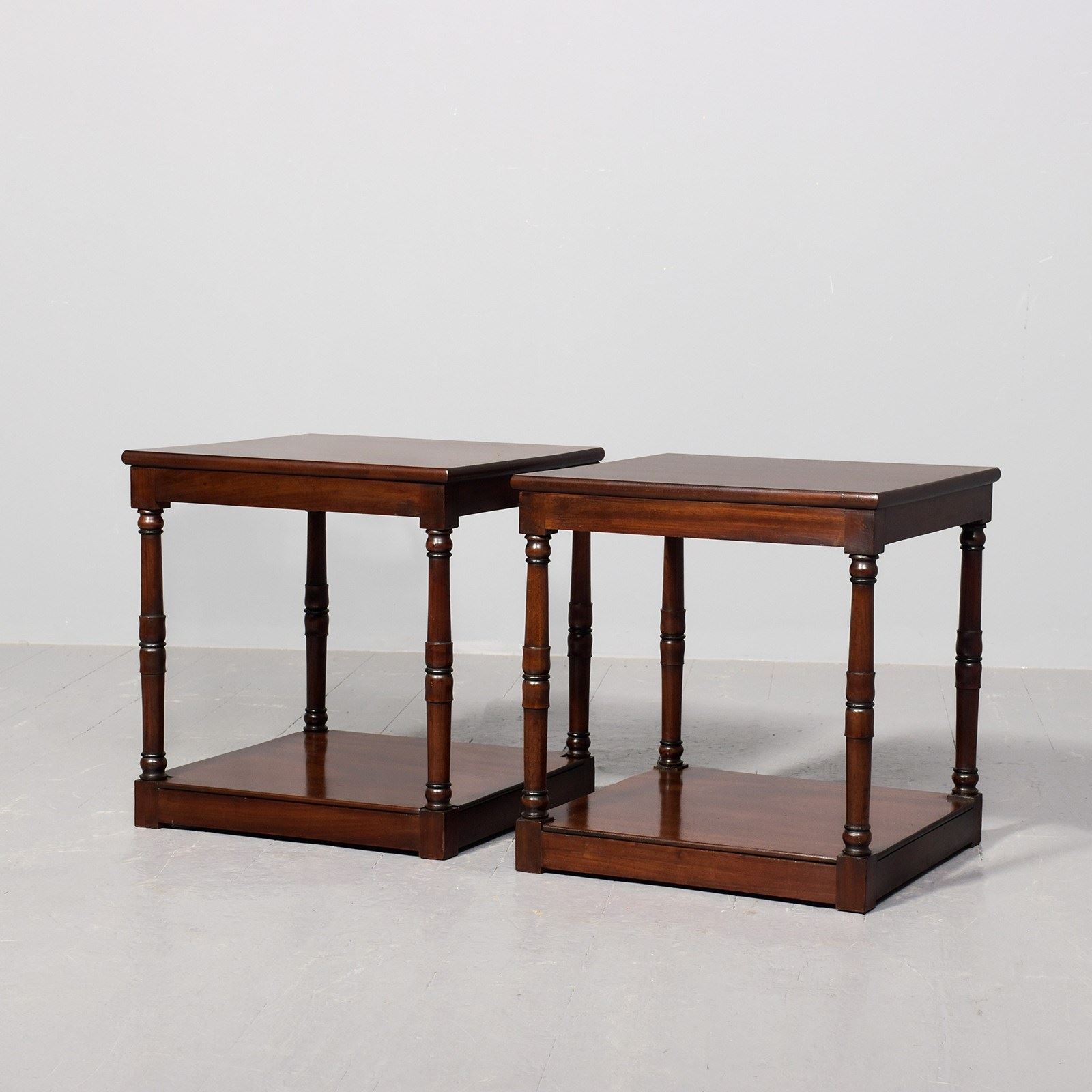 Pair Of Adapted George 3Rd Mahogany Two-Tier Stands In Figured Spanish Mahogany