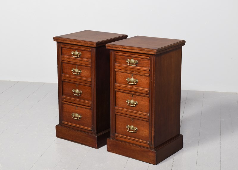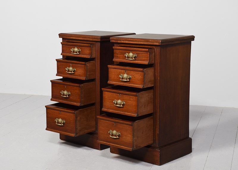 Pair Of Late Victorian 4-Drawer, Walnut Bedside Lockers