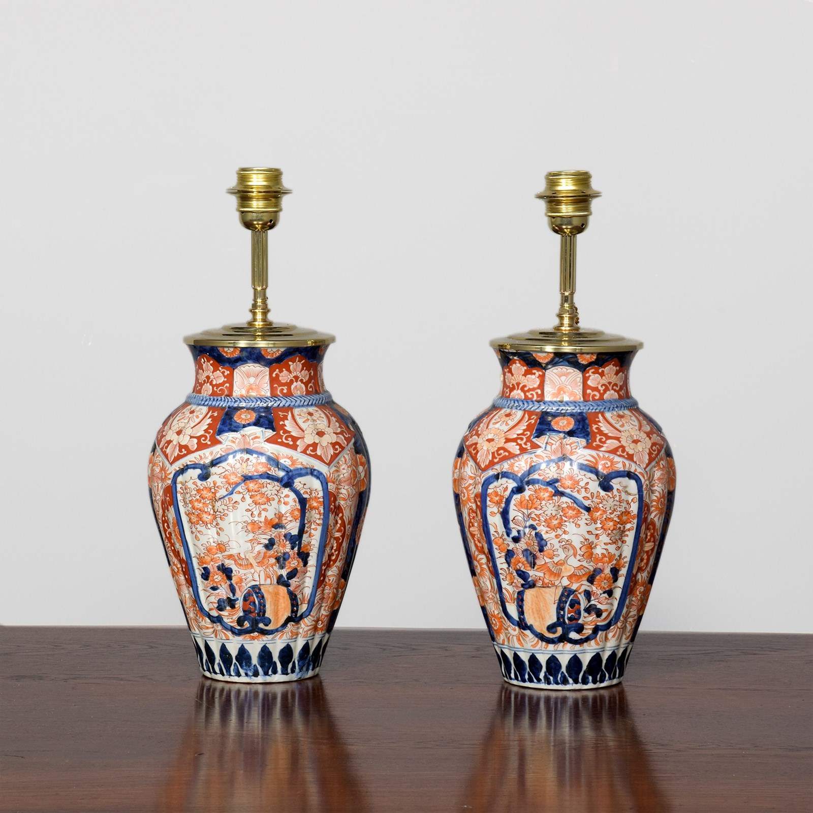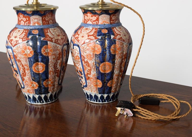 Pair Of Meiji Period Imari Period Vases Converted Into Lamps