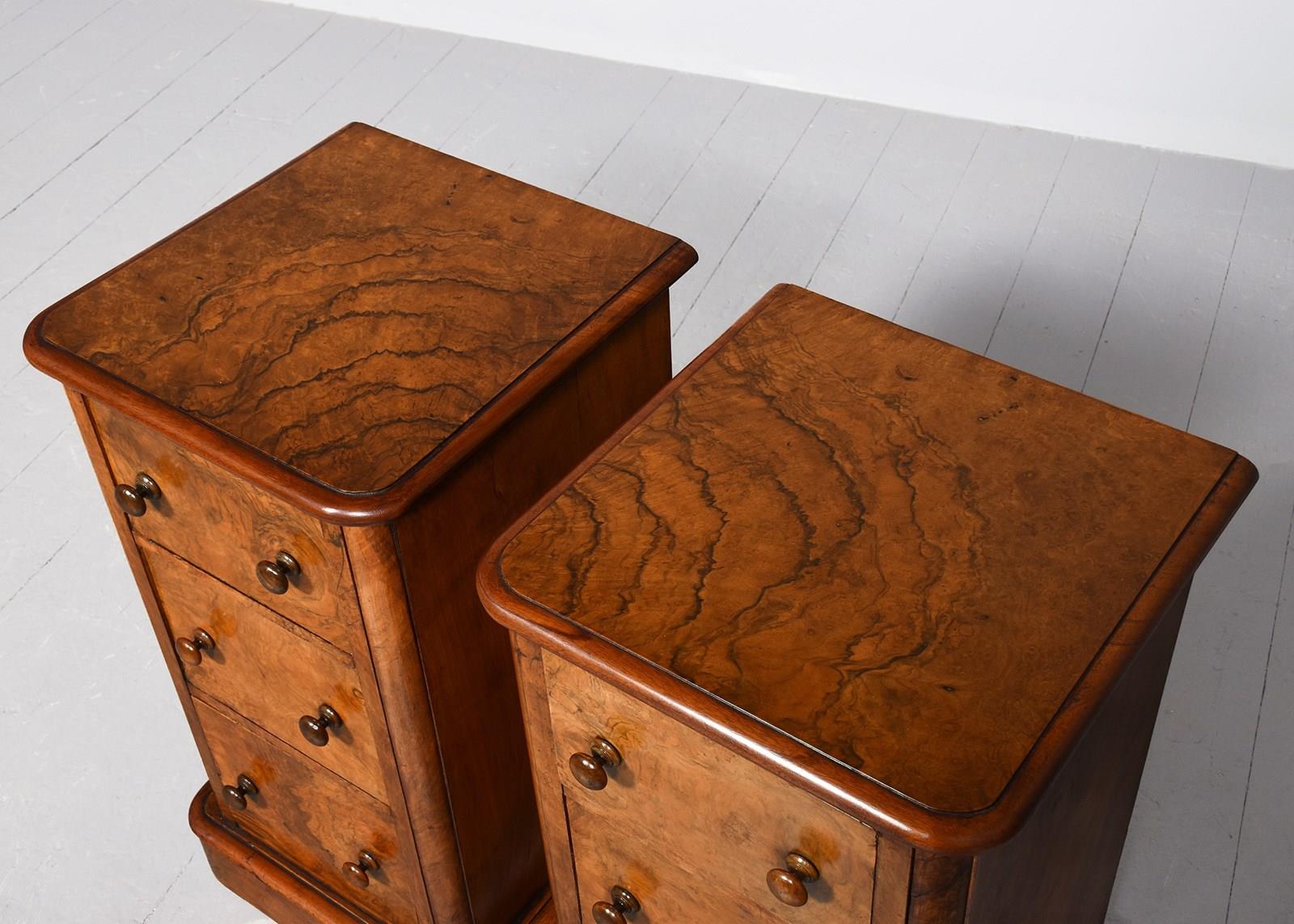 Pair Of Mid-Victorian Figured Walnut, Bedsides