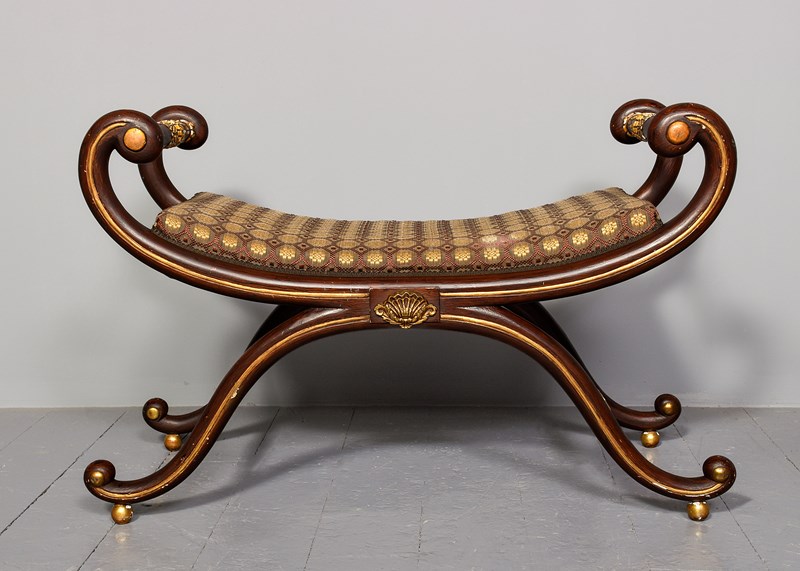 Pair Of Regency Style Scumbled & Gilded Window Seats