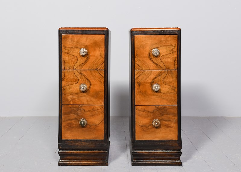 Pair Of Tall Narrow Art Deco Bedside Pedestals