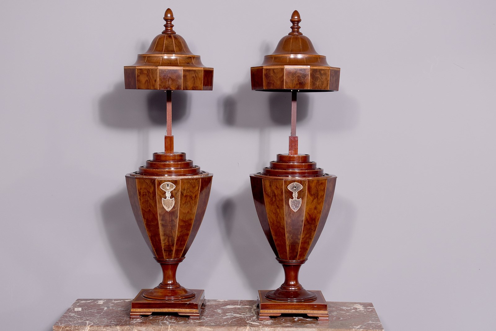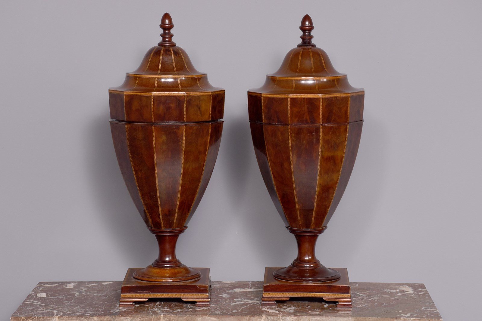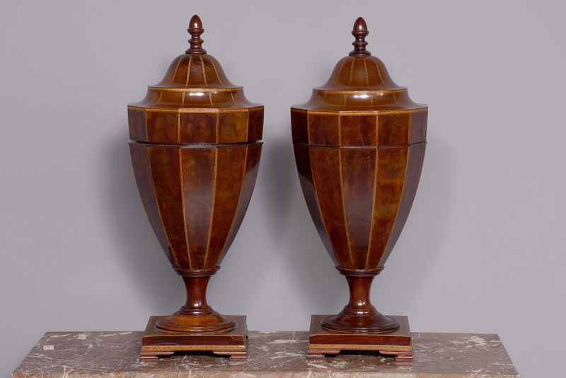 Quality Pair Of Lidded Inlaid Cutlery Urns
