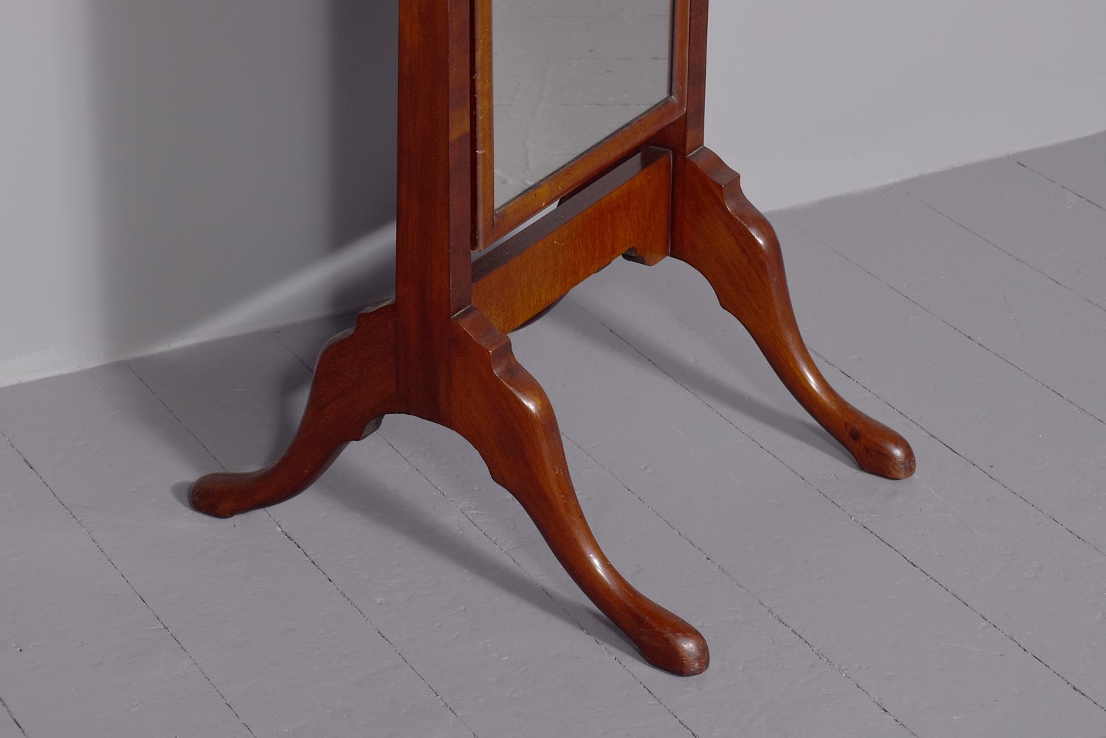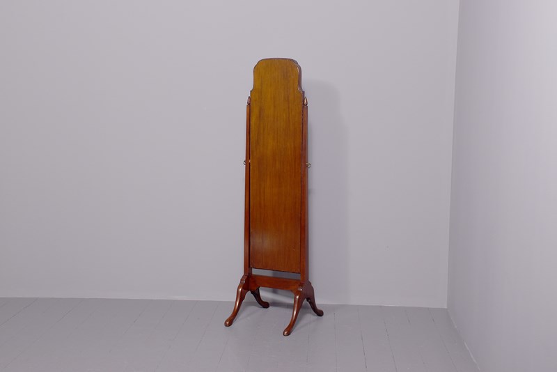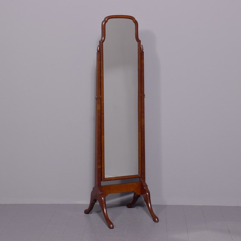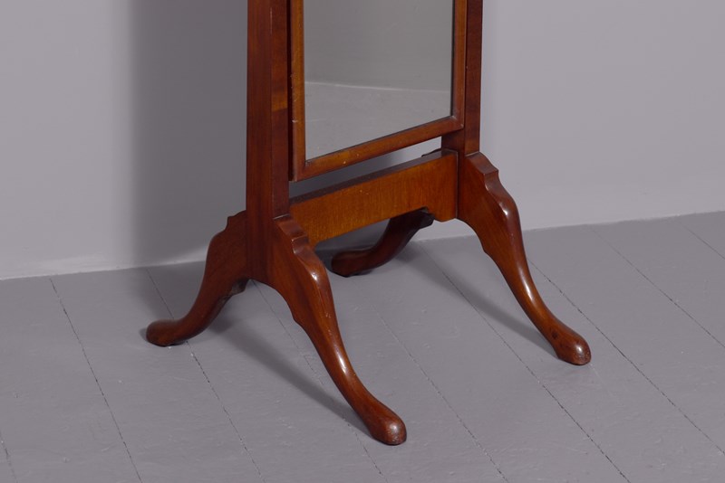 Quality Queen Anne Style Neat-Sized Mahogany Cheval Mirror In Spanish Mahogany