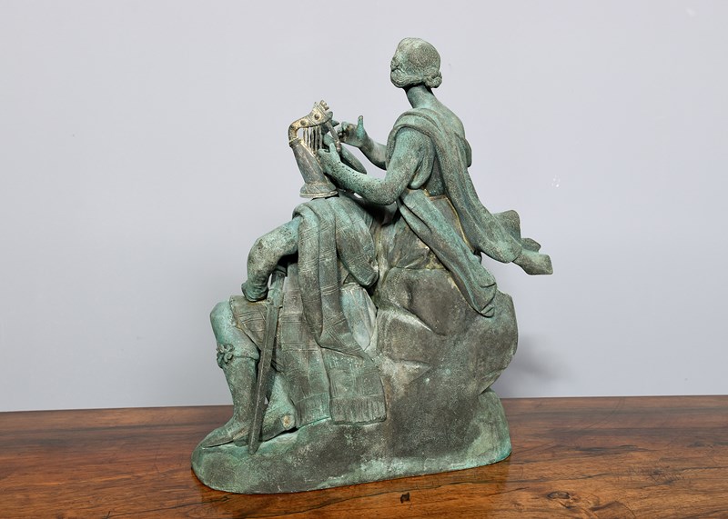 Rare Large Bronze Figure Of A Seated Highland Chief And Muse