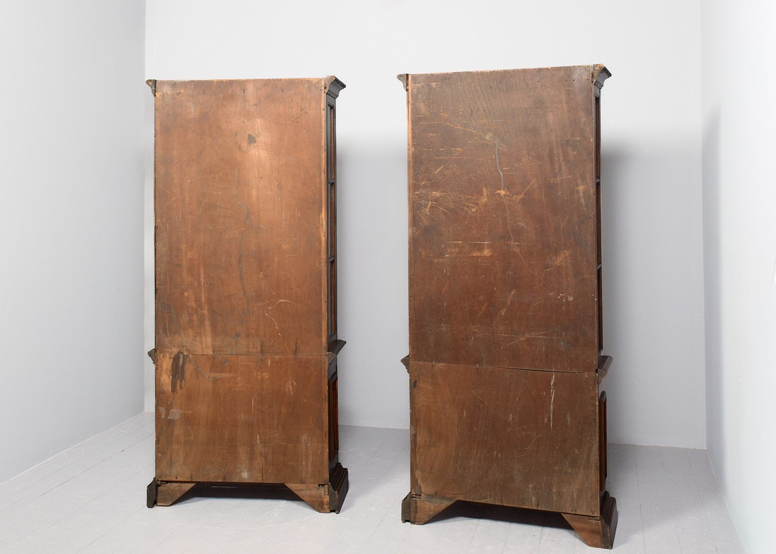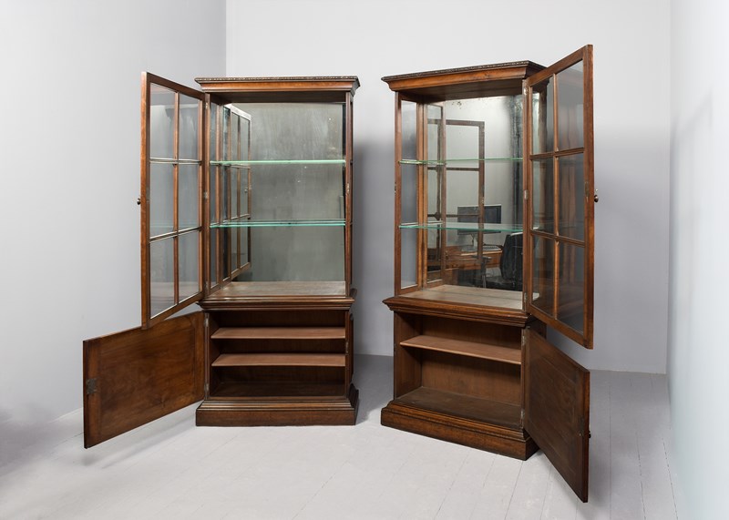 Rare Pair Of Tall Neo-Classical Style Part-Glazed Display Walnut Cases
