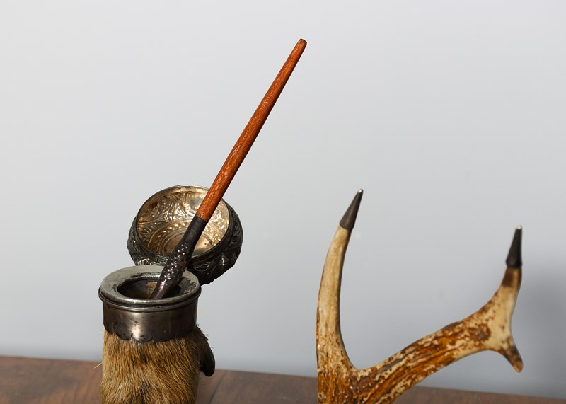 Scottish Oak, Horn And Silver-Mounted Desk Stand