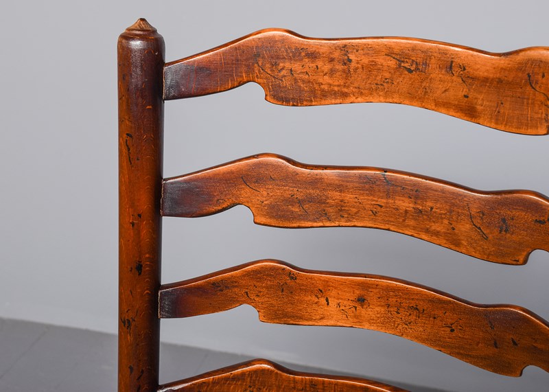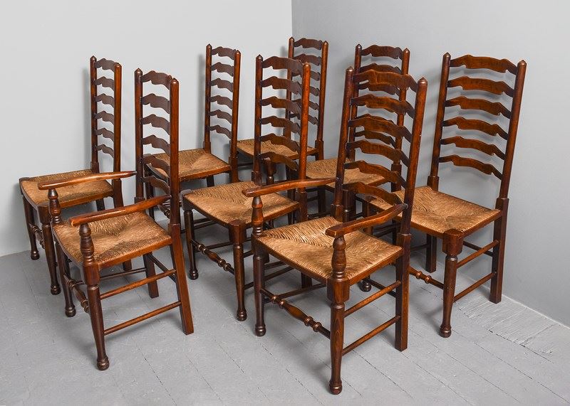 Set Of 8 Oak Ladder Back Dining Chairs