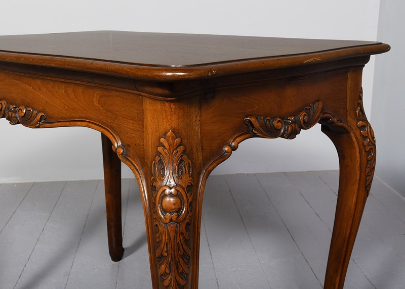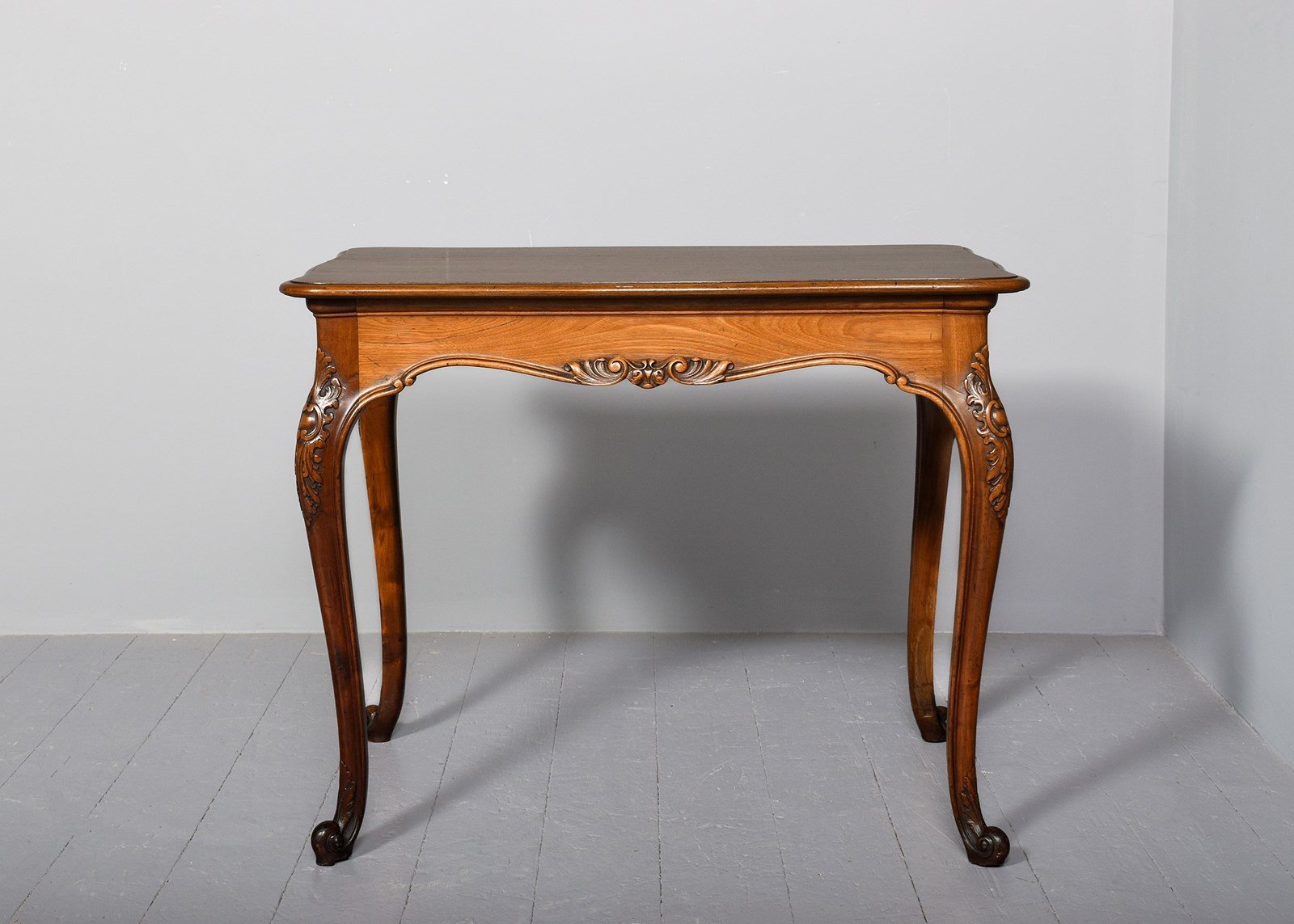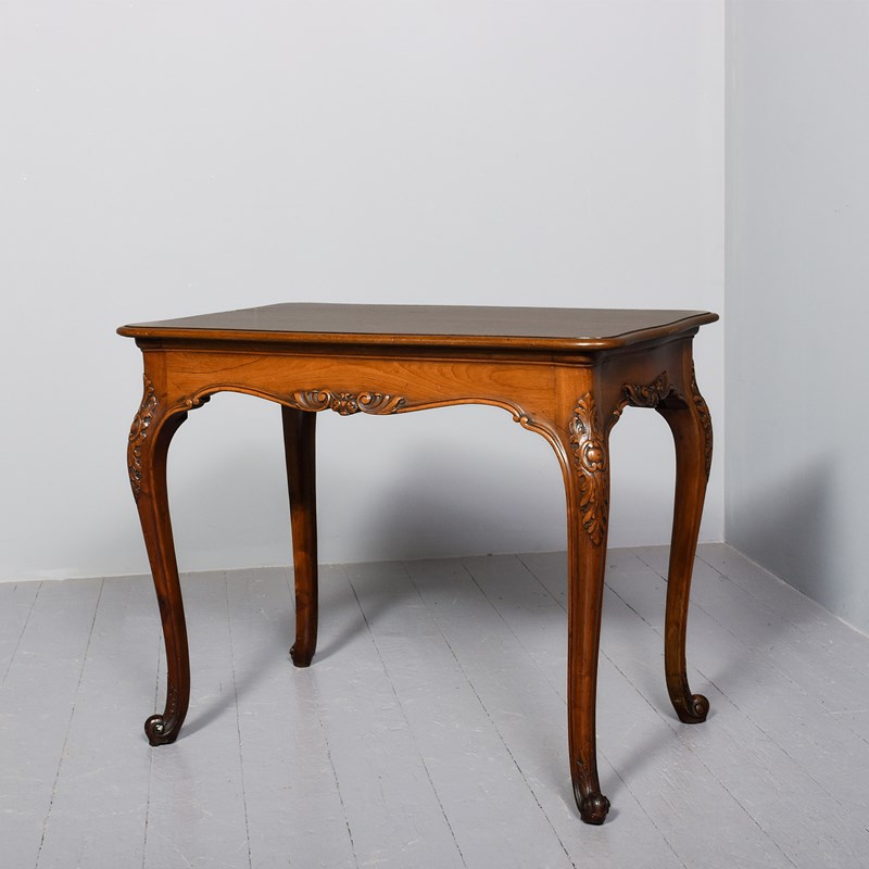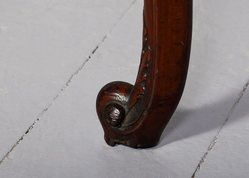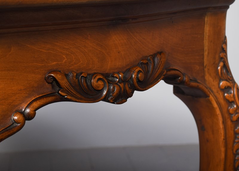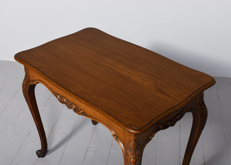 Circa 1880. Georgian-style free-standing, shaped mahogany centre table with a lovely mellow colour. The free-standing table in a nicely figured mahogany with a moulded fore-edge and shaped friezes with foliate carving and supported on cabriole legs with foliate-carved knees and a scrolled toe with acanthus decoration. Lovely mellow colour and in excellent condition.