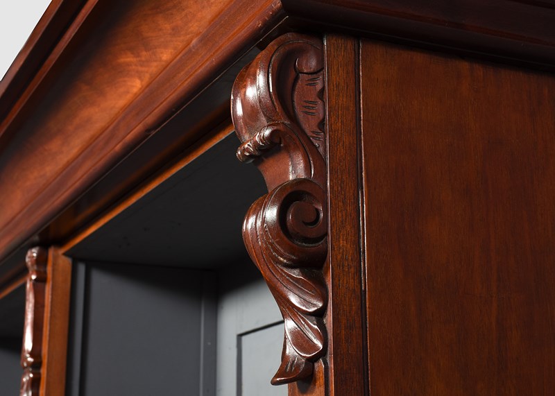 Tall Victorian Two-Section Mahogany Open Bookcase With 5 Shelves.