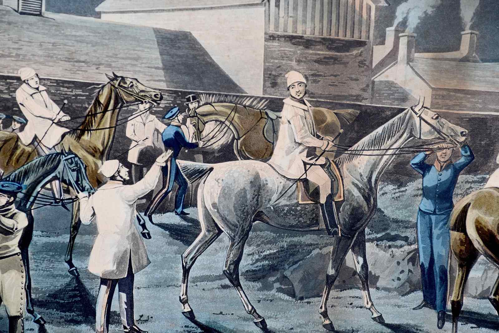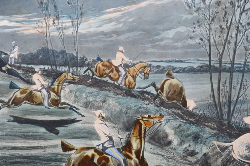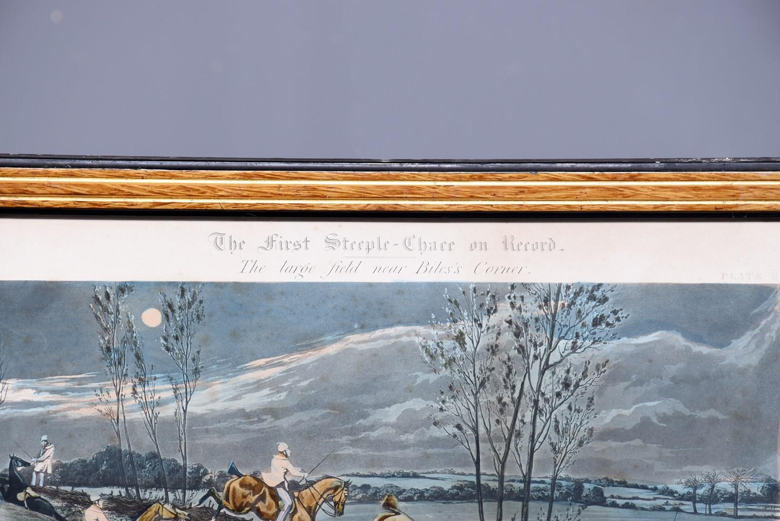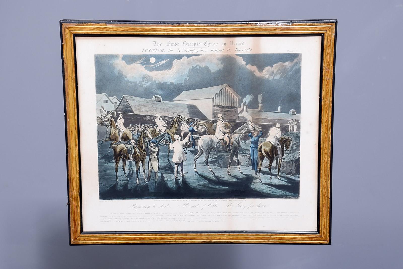 A set of 4 original hand coloured Aqua-prints after by ‘H. Aiken’ published 1st March 1862 by ‘Ben Brookes’, Oxford and engraved by ‘J. Harris’, the four plates with writing above and below the aqua-prints, all glazed and scumbled frames with two ribbed sections.