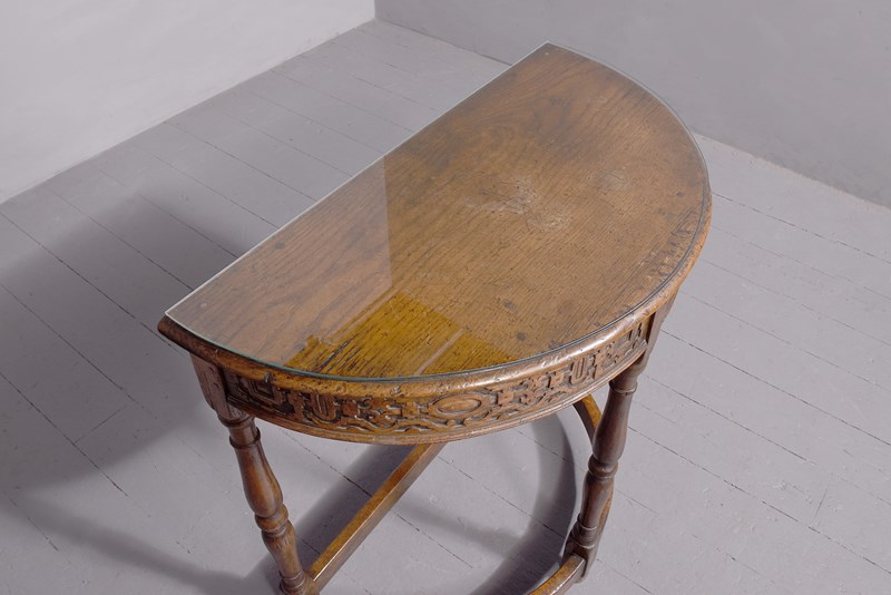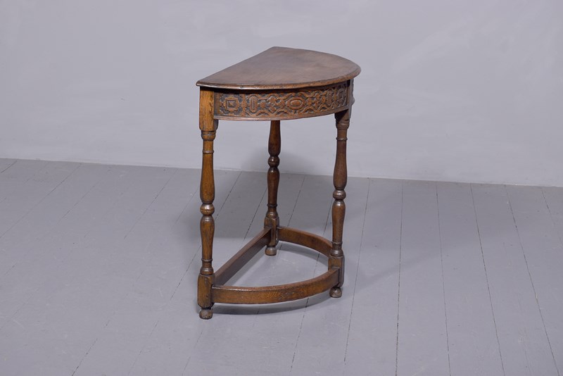 Tudor Style Oak Demi-Lune Table In Oak