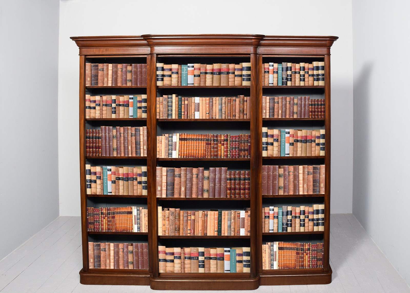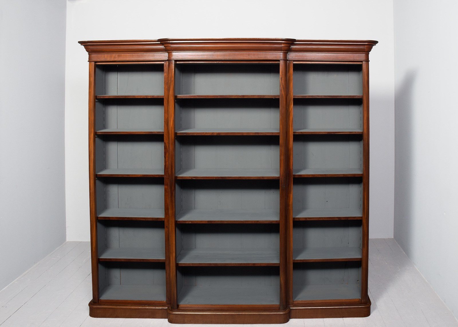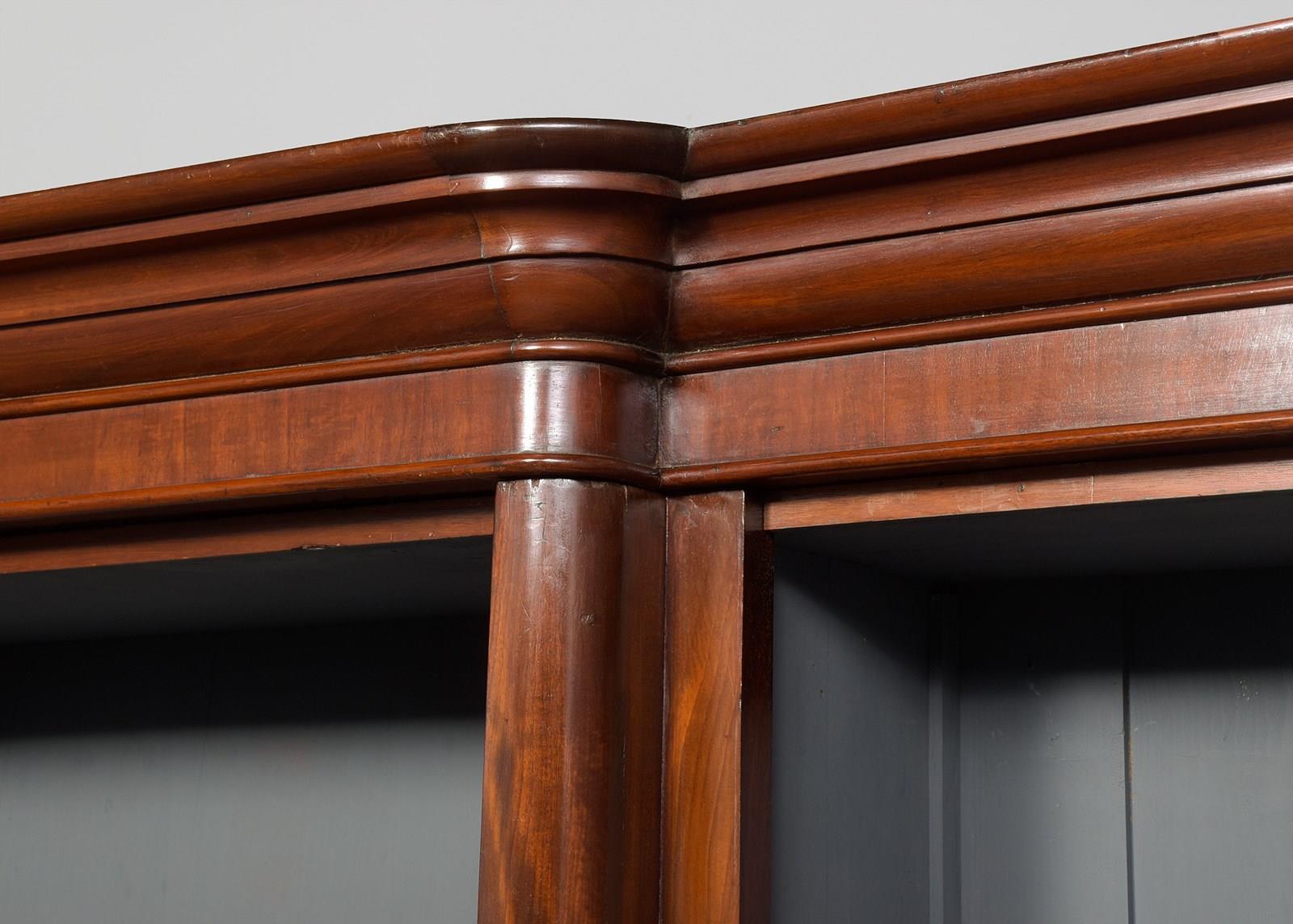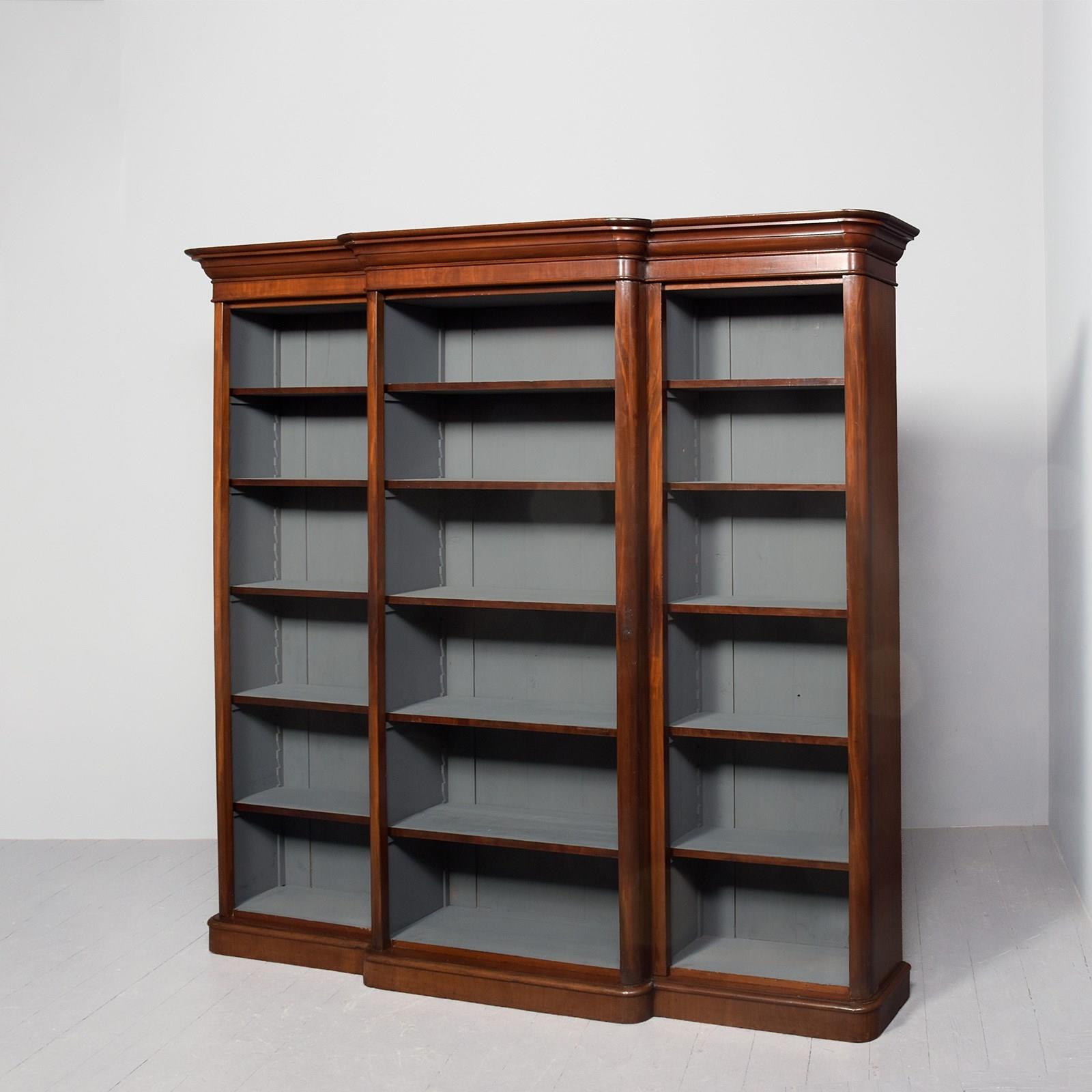 Victorian Mahogany, 3-Section Breakfront Bookcase, With 5 Adjustable Shelves.