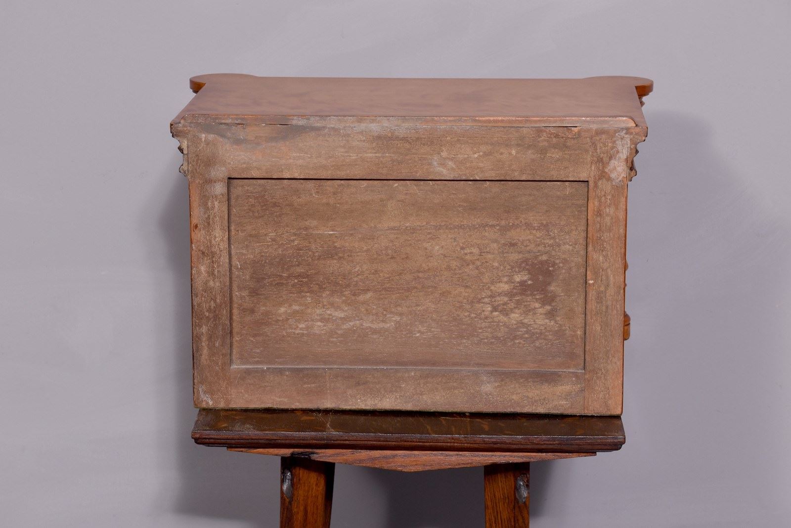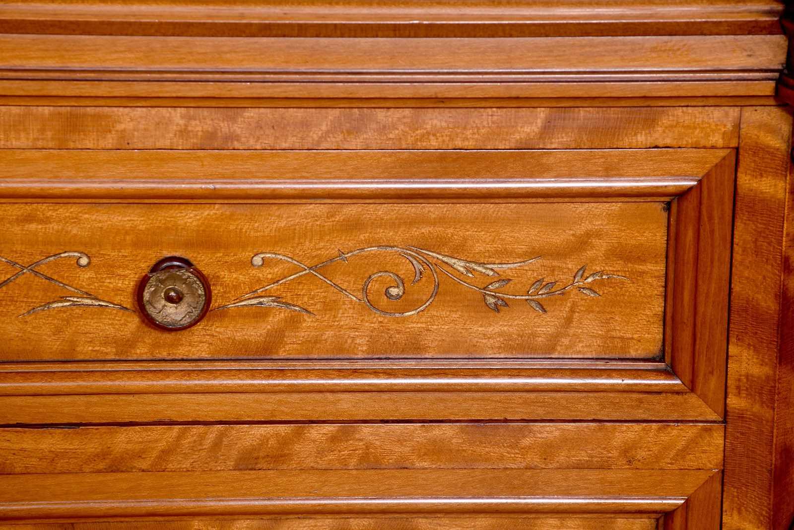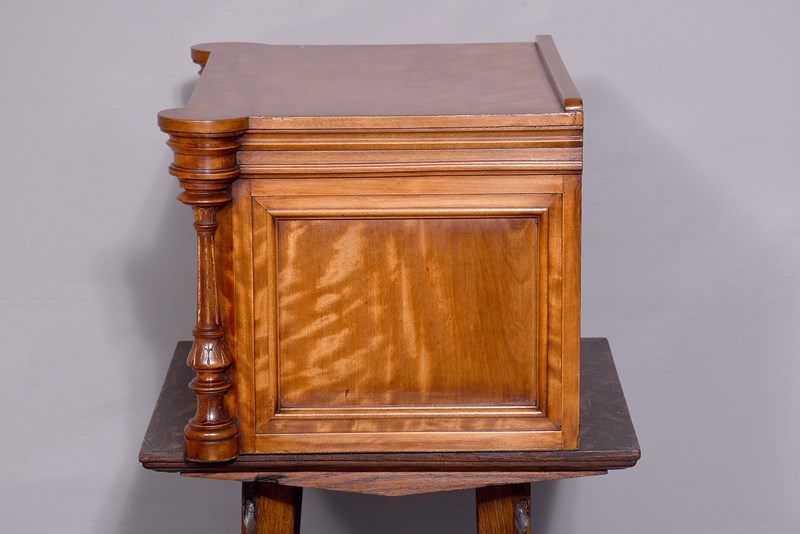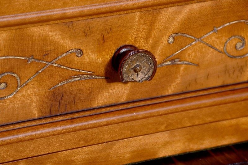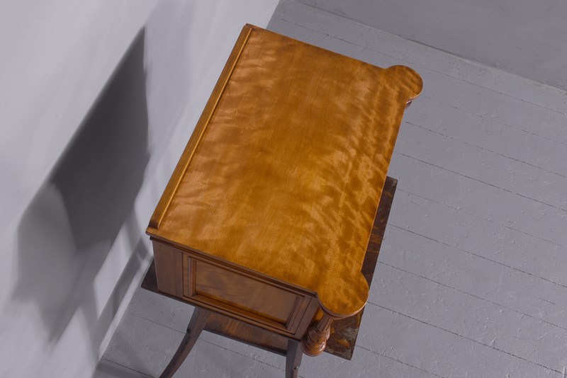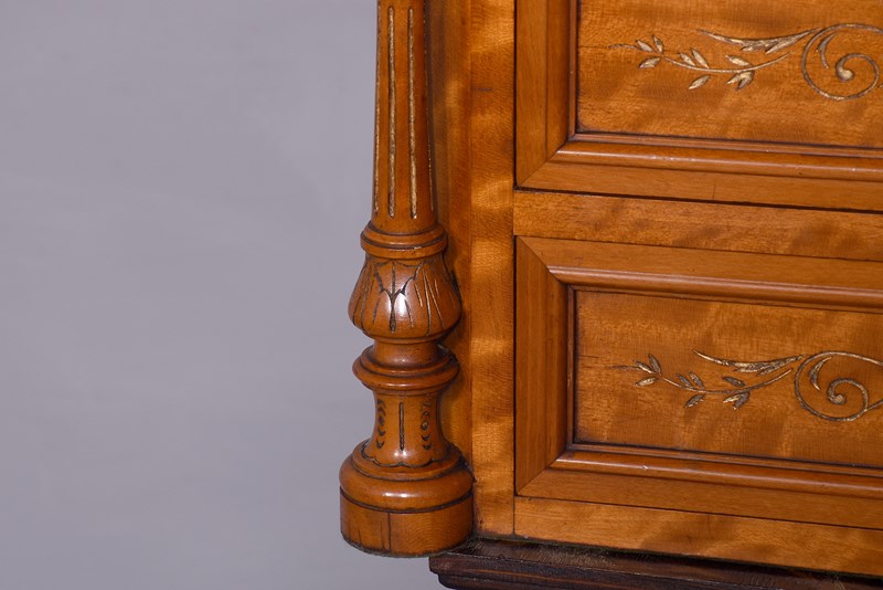 Circa 1880 adapted. Victorian Satinwood Jewellery Drawers The top with outward protruding corners and fluted pillars flanking the two drawers with gilded engraved fronts and turned knobs