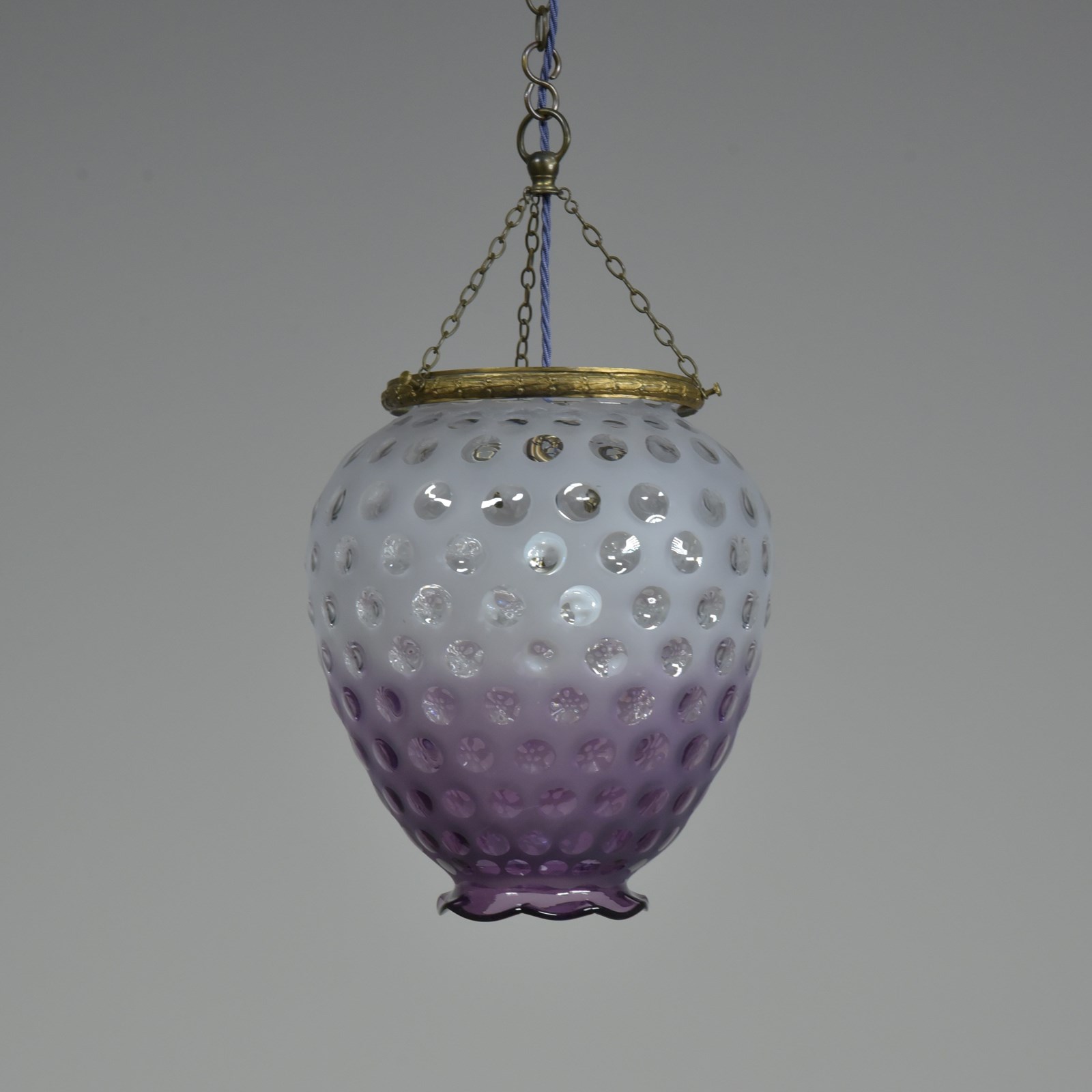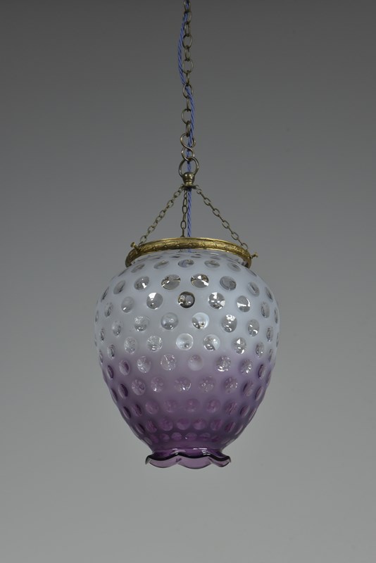 A dimpled violet glass lantern / pendant light. Approx mid century. Murano?
