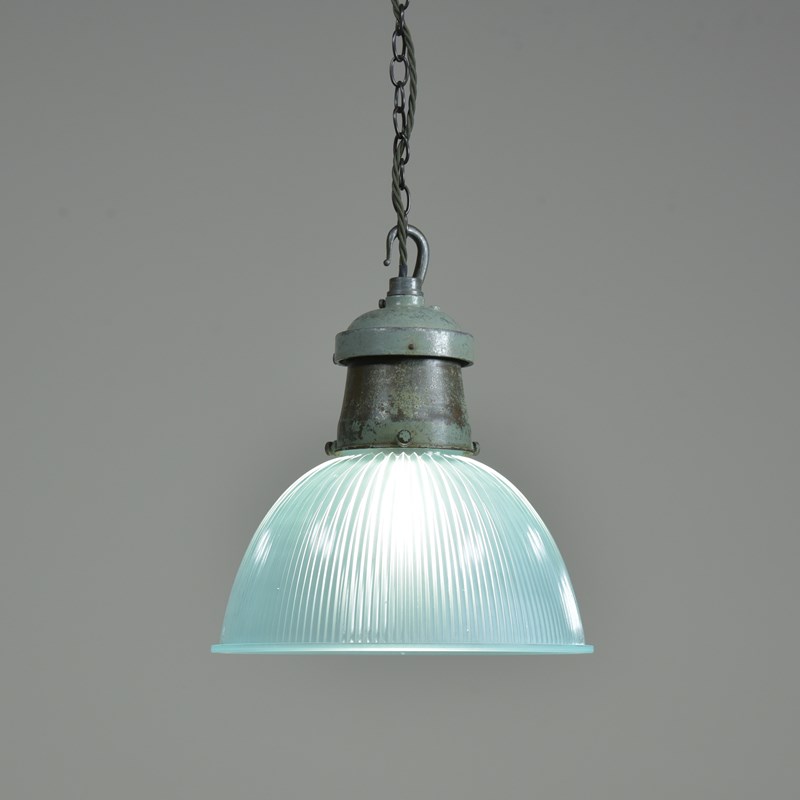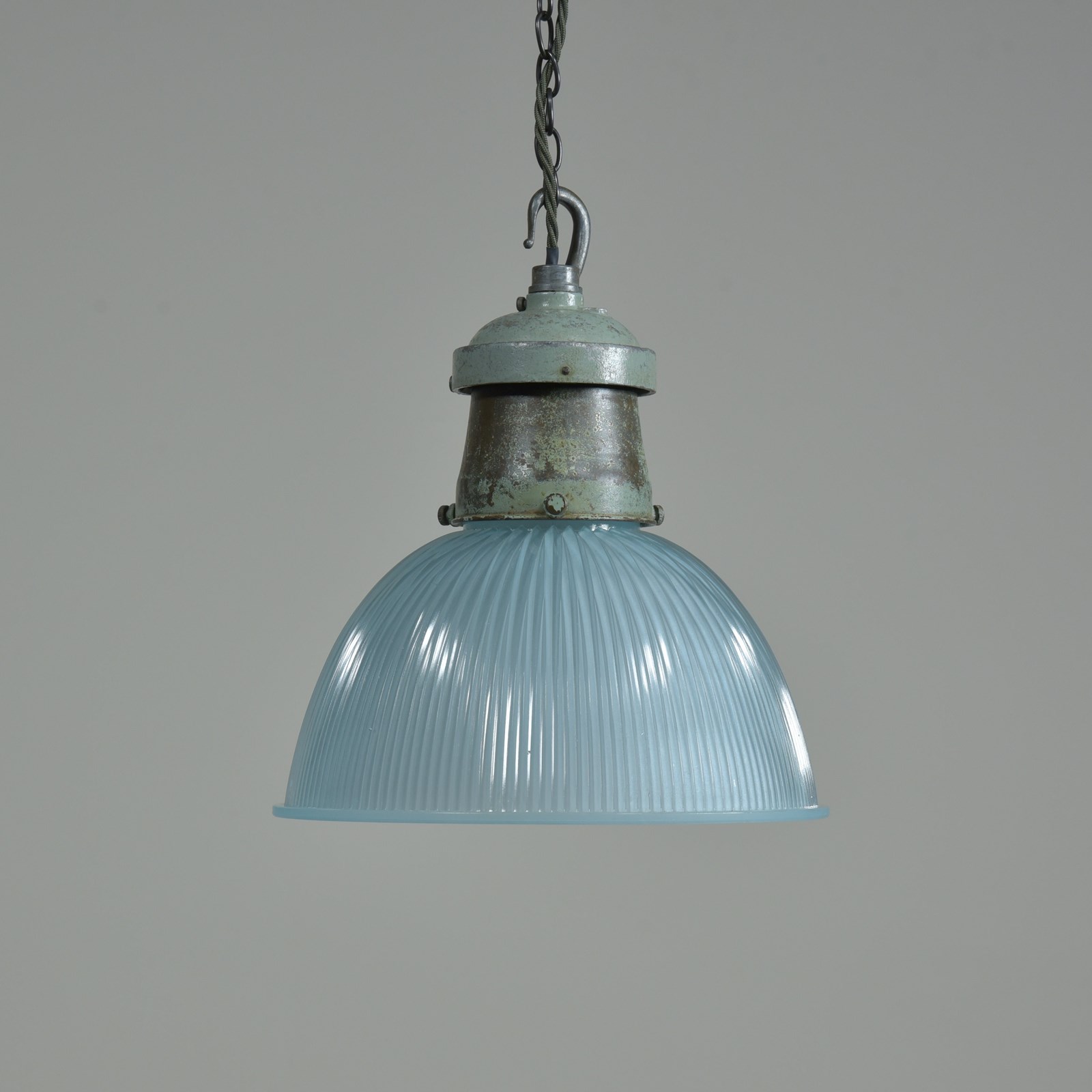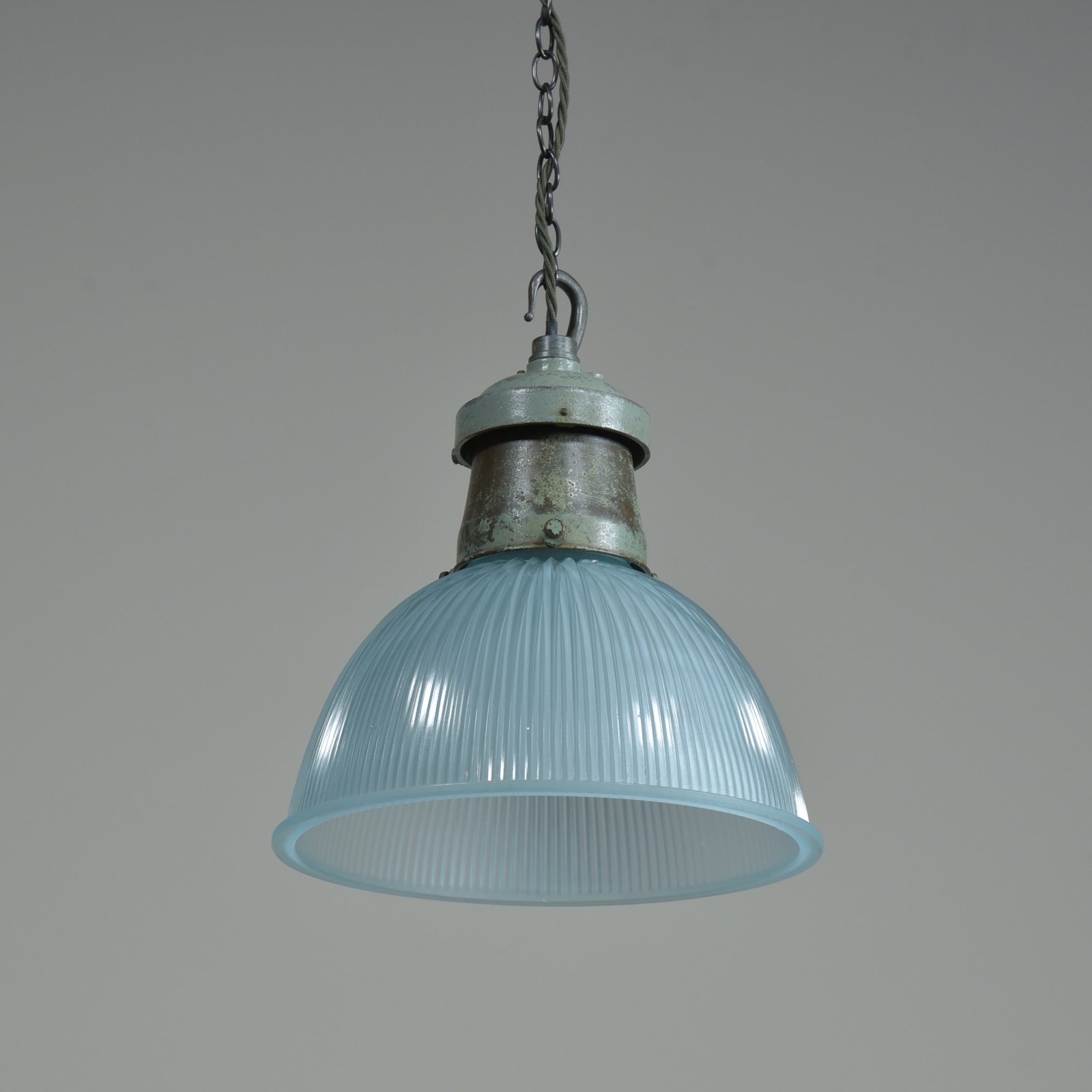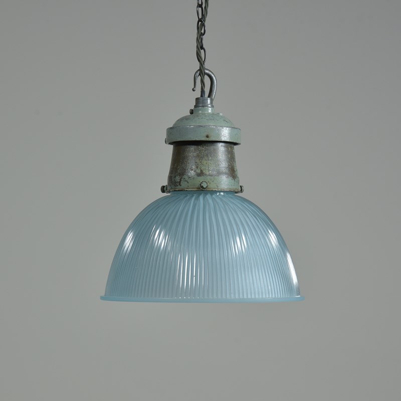 Pair Turquiose Holophane Pendant Lights