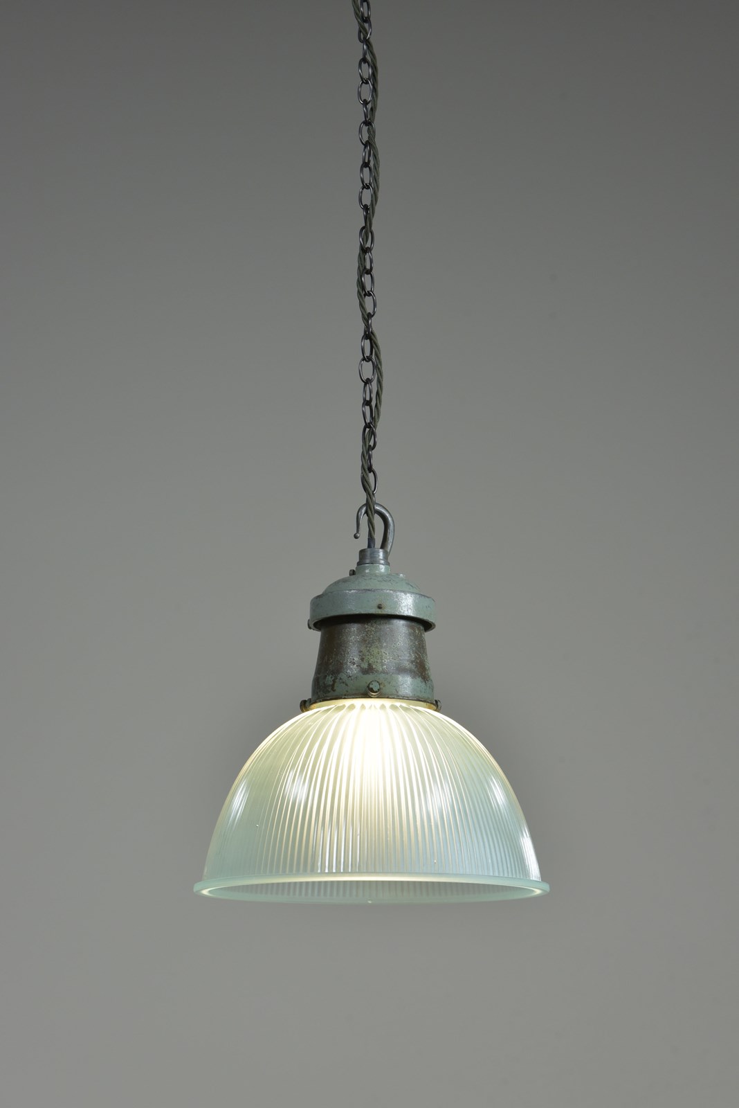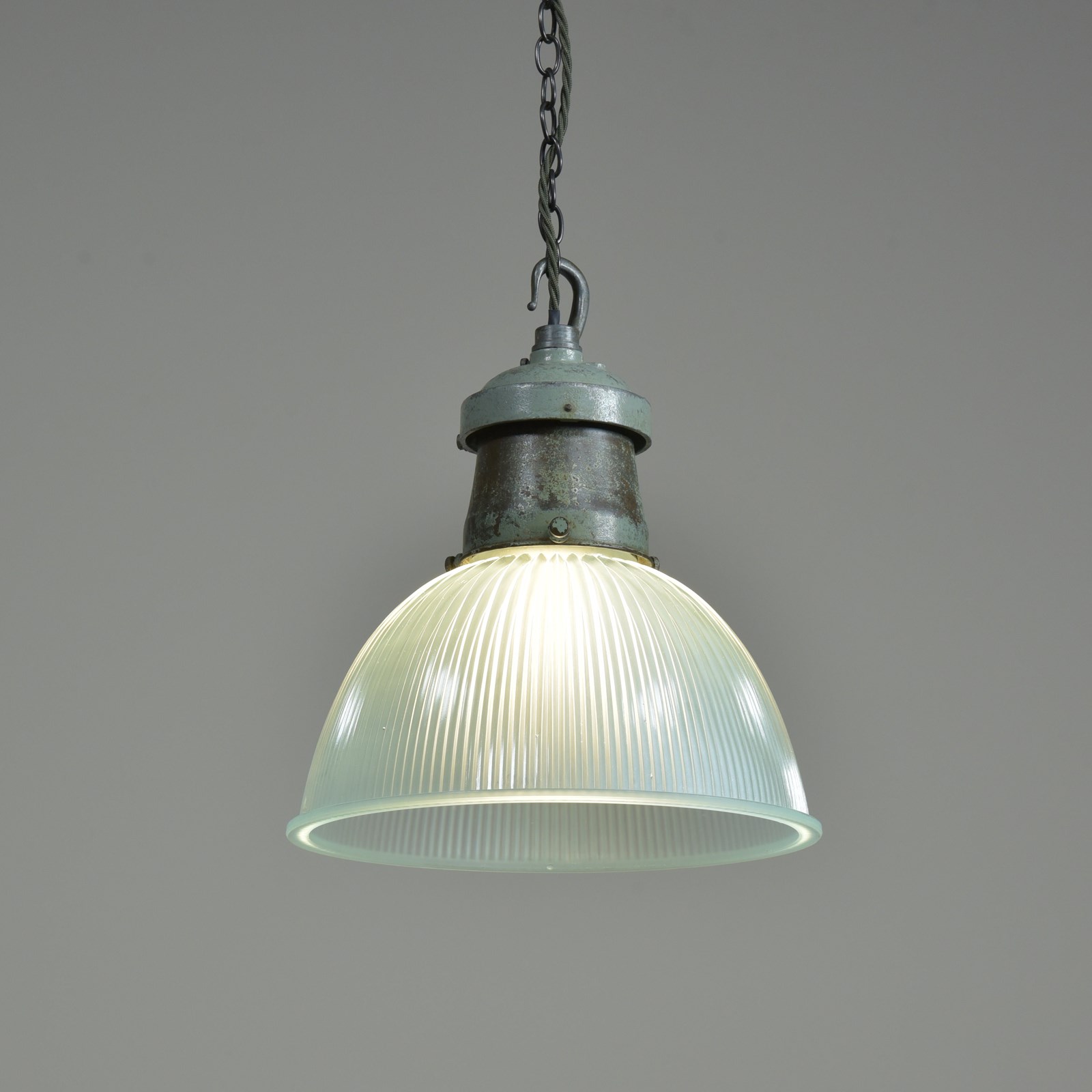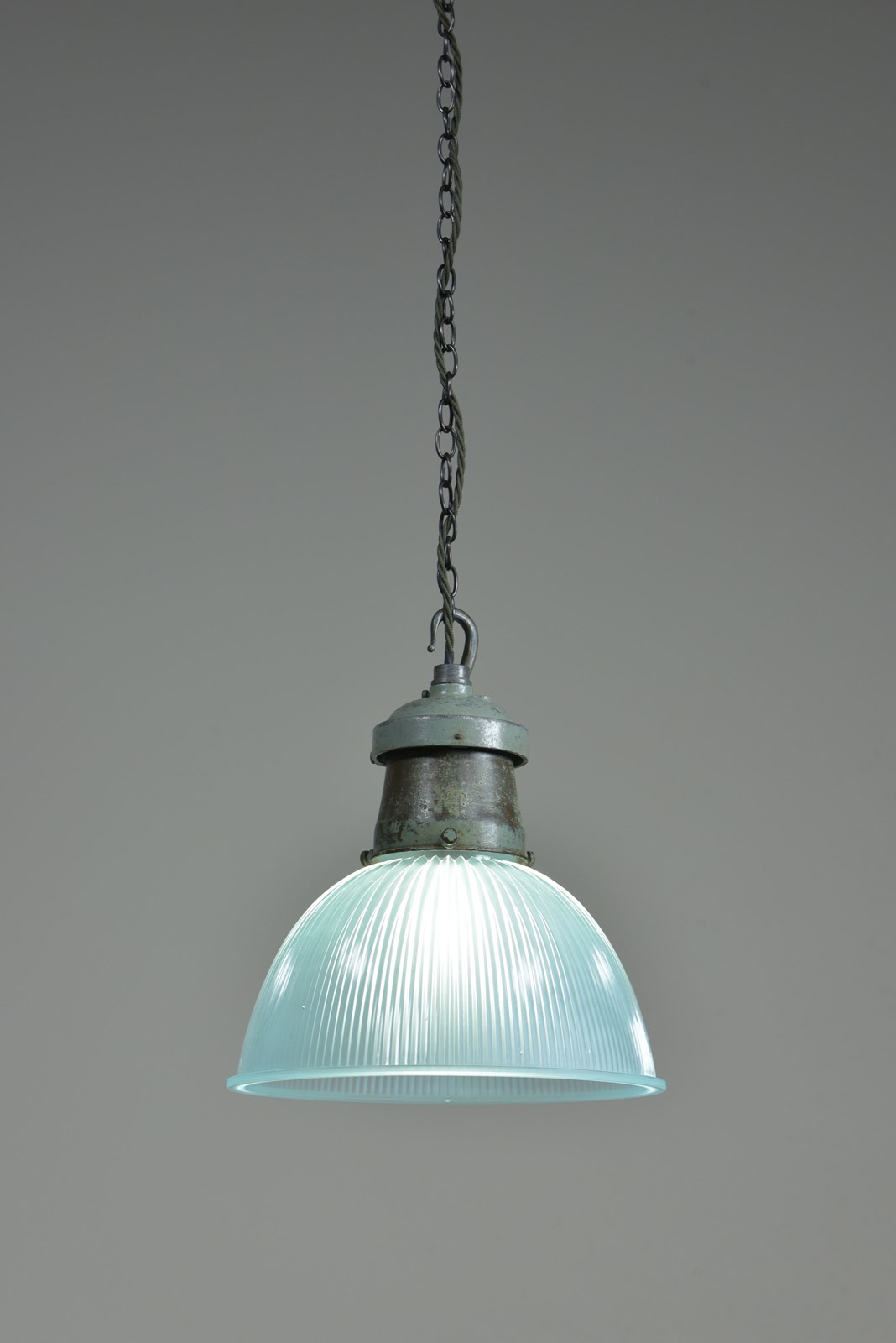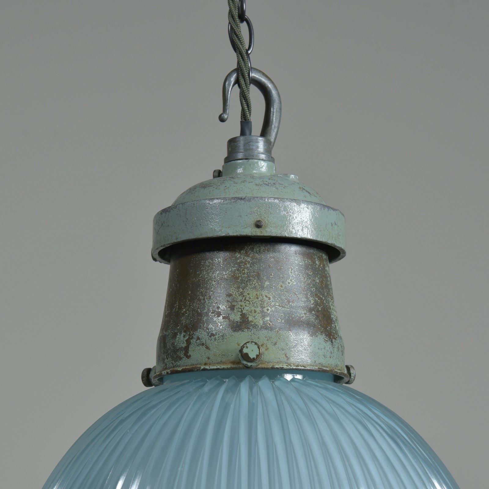 Pair Turquiose Holophane Pendant Lights