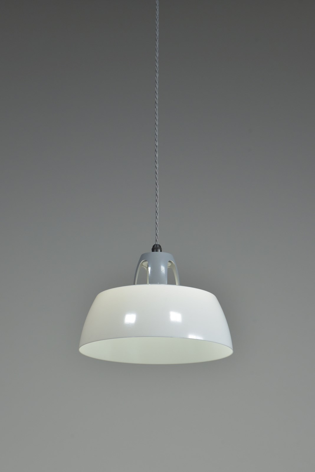 Mid century ish. White shades, grey snap in galleries. Plastic is not brittle or misshapen or discoloured.