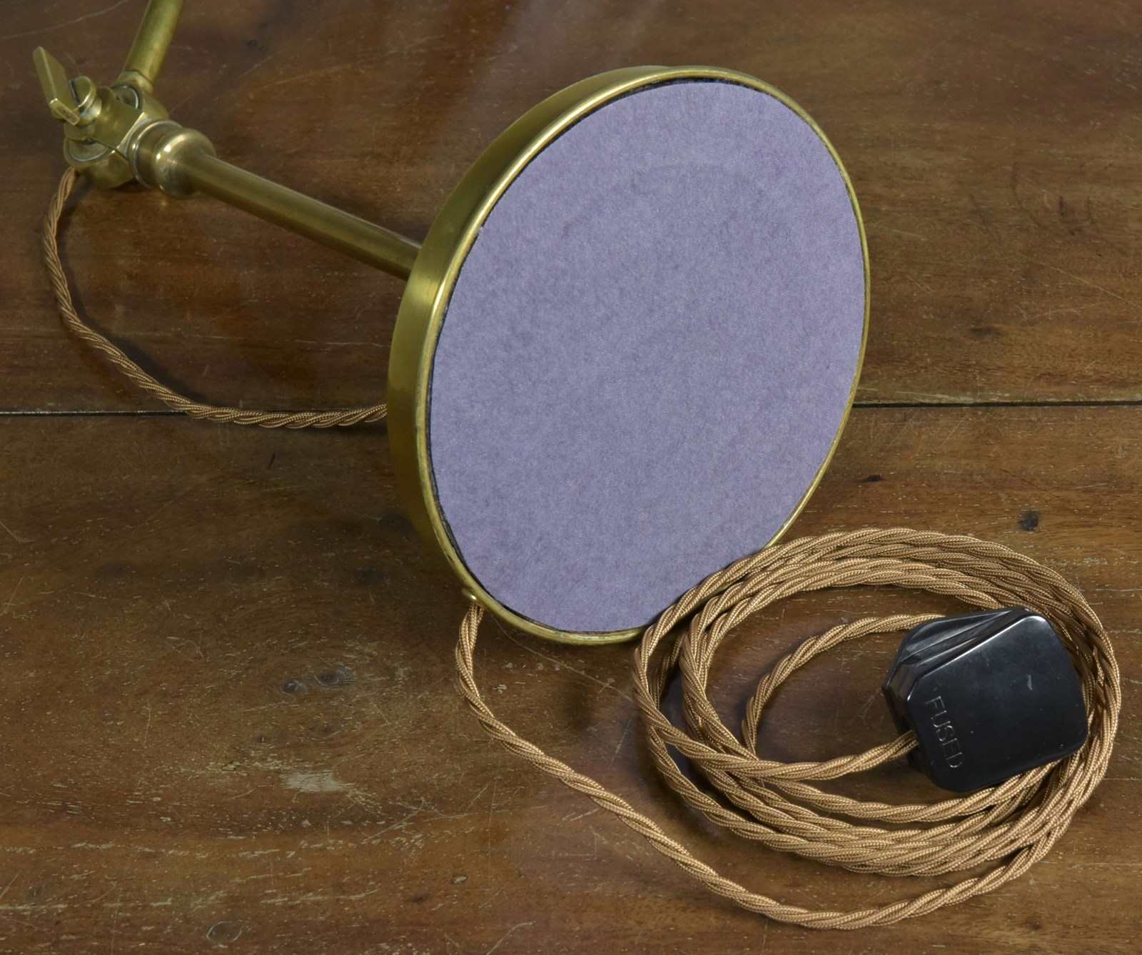 Fully rewired with 3.5 m fabric flex (2.5m exposed), new patinated brass BC lampholder, 3amp plug. New fabric base. PAT tested.