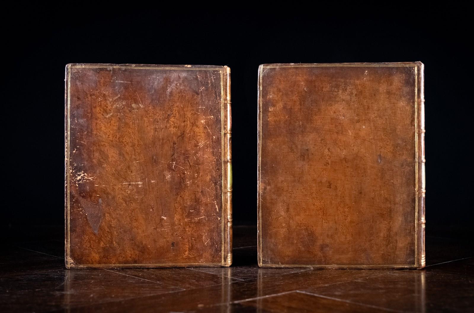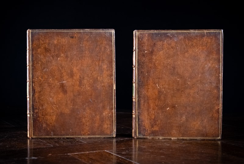 Imperial quarto. Both volumes are fully and handsomely bound in tan calf leather with five raised bands to the spine, a red leather title panel and green leather volume panel.