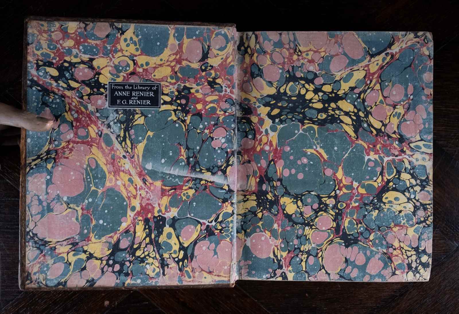 Book plate of 'F Renier' to the front pastedown for Anne and Fernand Renier; they were passionate book collectors and their library of 80,000 children’s books is now kept at the V&A.