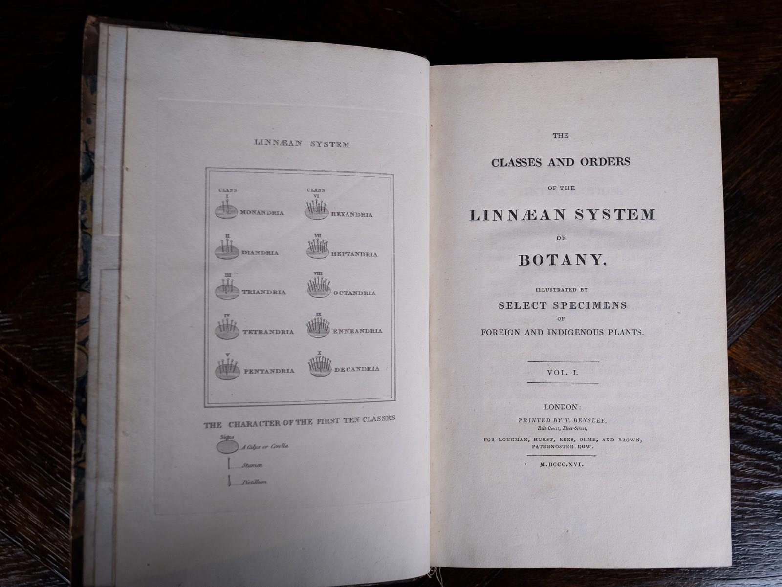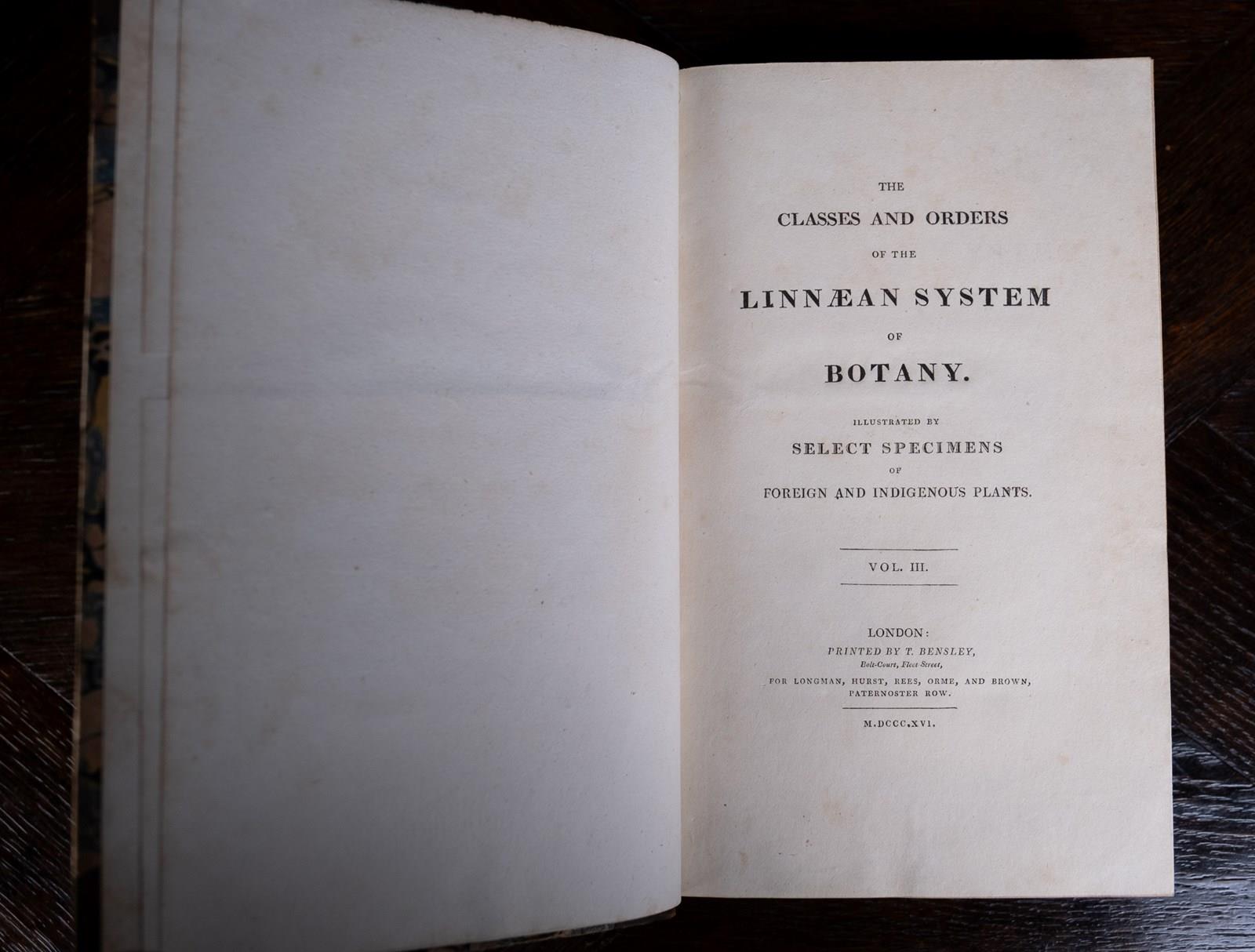 'The Class And Orders Of The Linnaean System Of Botany' by Richard Duppa, published by Longman, Hurst, Rees, Orme and Brown, London in 1816. First edition thus. Complete in three volumes. With 240 engraved plates, 237 of which were hand coloured.