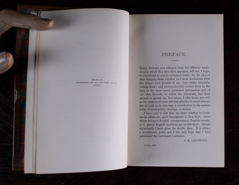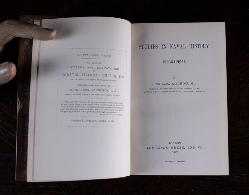 'Studies In Naval History' by John Knox Laughton. Published by Longmans, Green and Co, London in 1887. First edition thus.