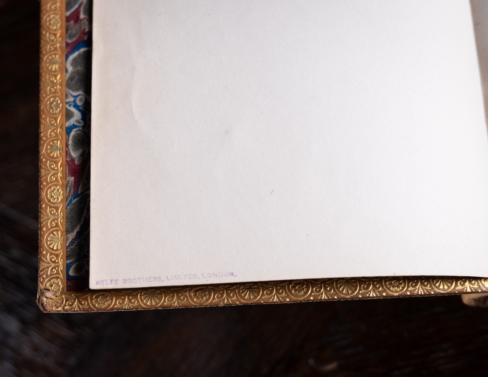 Relfe Brothers, London full tan leather prize binding. Binder stamp to front flyleaf. Central Foundation Boys' School, London crest gilt stamped to the front board. Five raised bands to the spine and gilt stamped title panel. Light shelf wear and very slight fading to the boards in areas but generally the volume exterior remains in a very good condition overall.