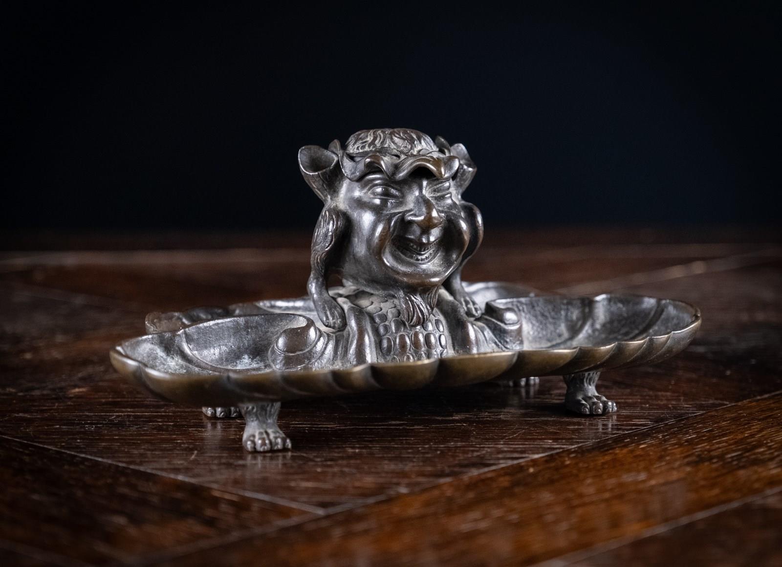 An intriguing and substantial late 19th century bronze devil inkwell.