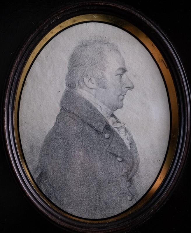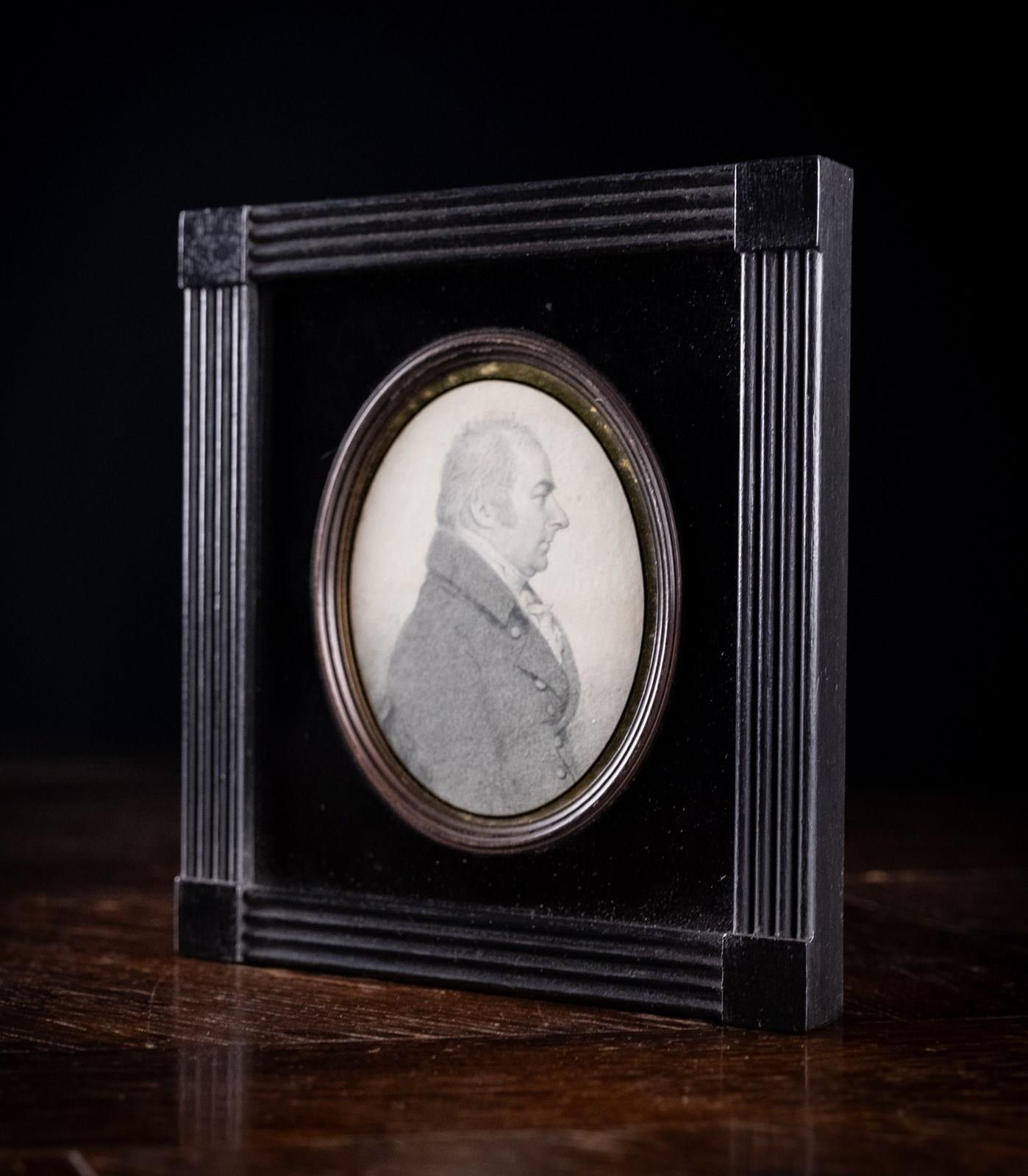 An extremely fine pencil study of a seated gentleman, housed in an ebonised frame. Unsigned. Circa. early 19th century.