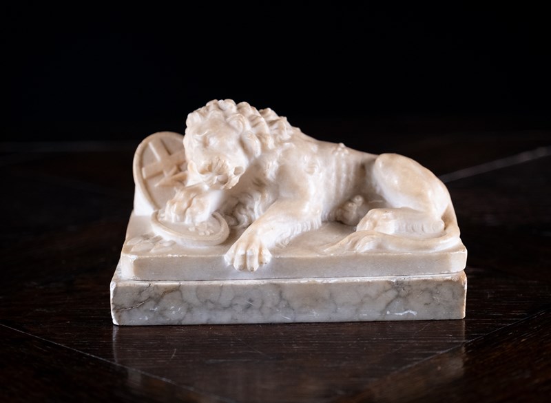 A 19th century 'Lion of Lucerne', after the large carved rock relief in Switzerland designed by Bertel Thorvaldsen (1770-1884).