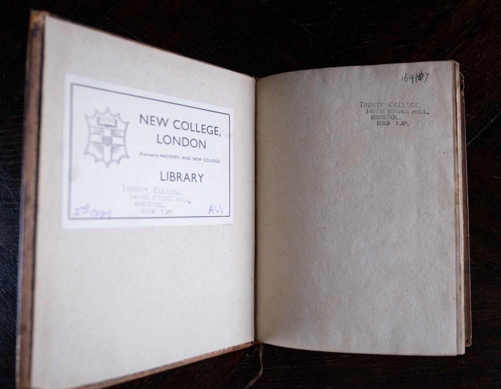 The sermon has been sympathetically rebound, incorporating the original board leather. Gilt stamped title to the spine. Library label to front pastedown and 'Hackney College Library' stamp to title page.