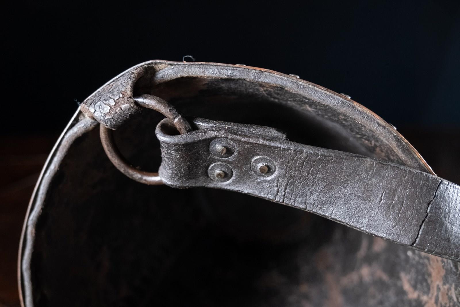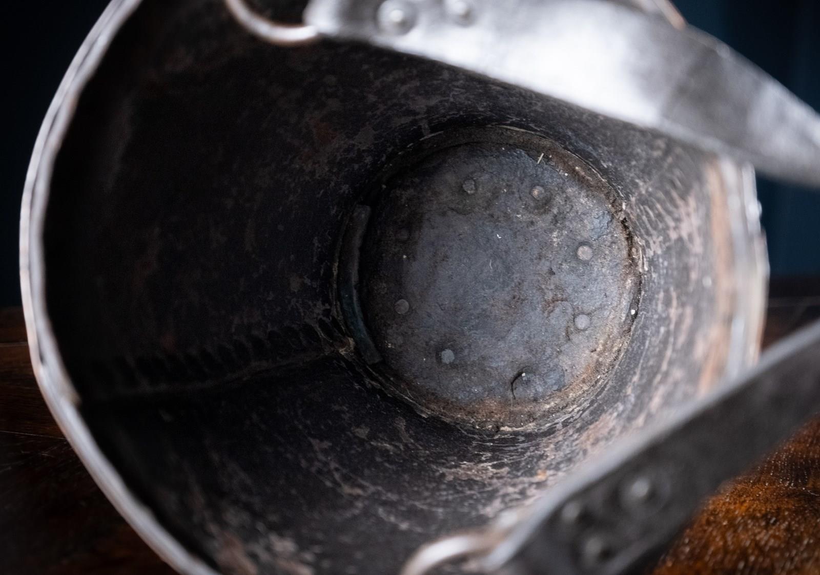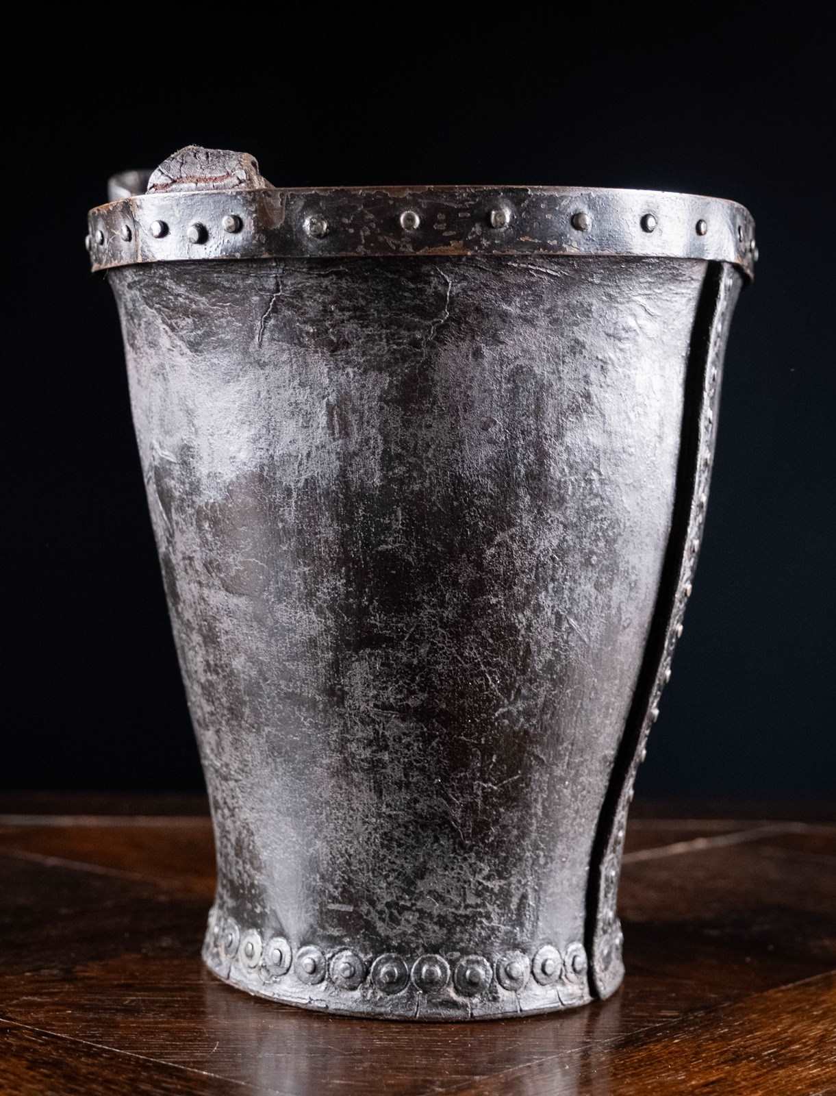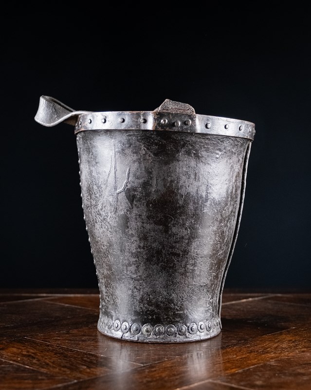 The bucket is of a wonderful form and colour throughout with the George V cypher painted in gilt and red to the front. The whole remains strong and sturdy with its original leather handle.