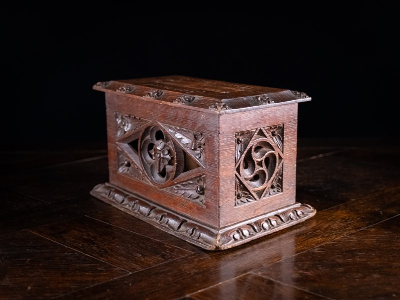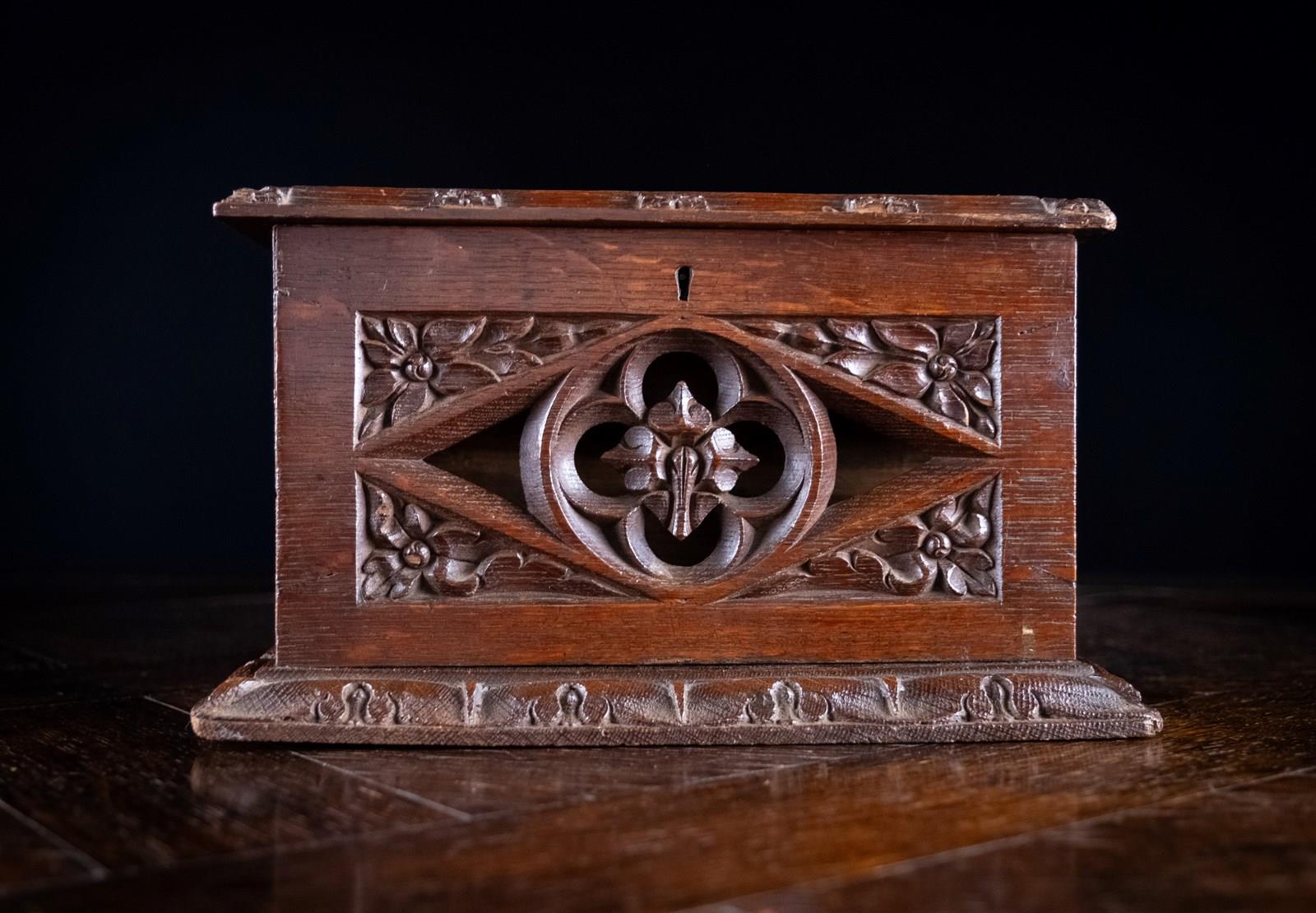 Gothic Revival Oak Letter / Correspondence Box, C.1880