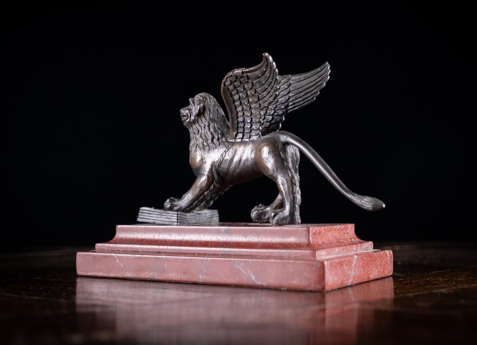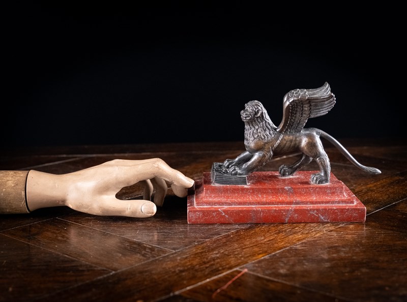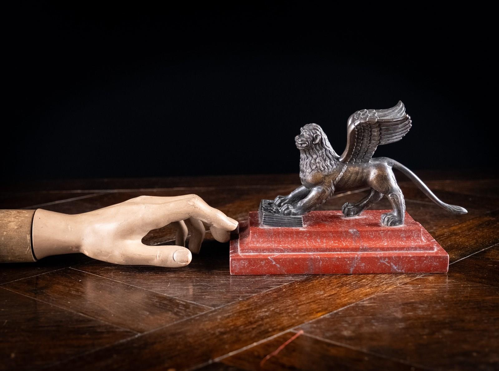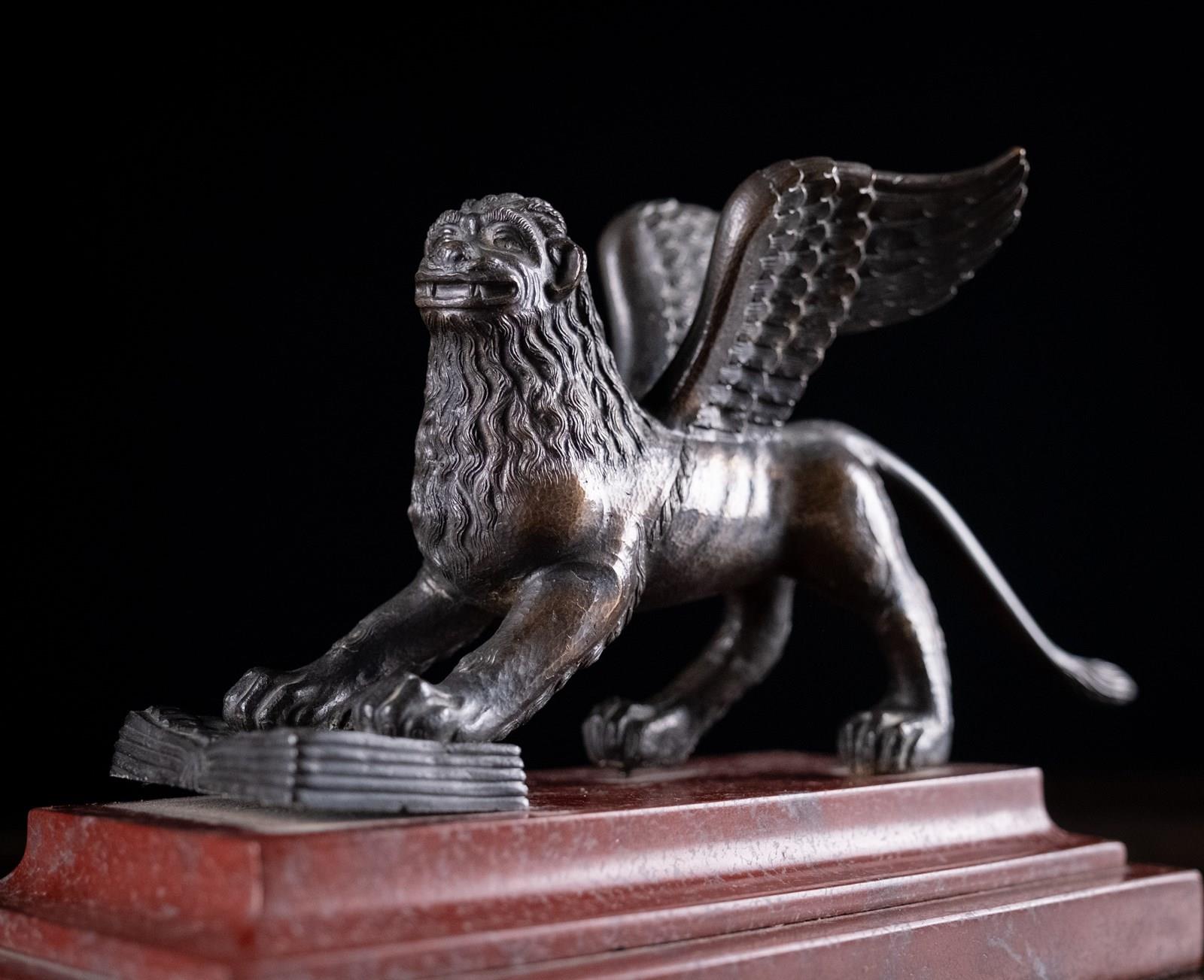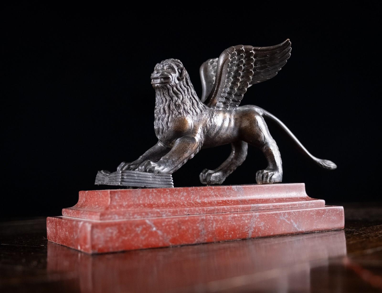 A handsome Grand Tour bronze depicting the Lion Of Saint Mark upon Rossa Francia marble base, c.1880.