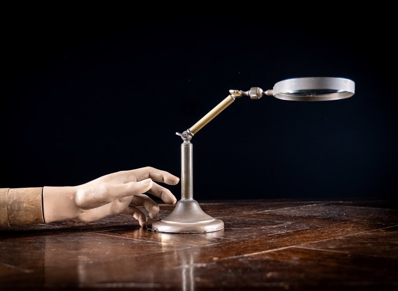 Large Brass Angle-Poise Library Magnifying Glass, C.1910