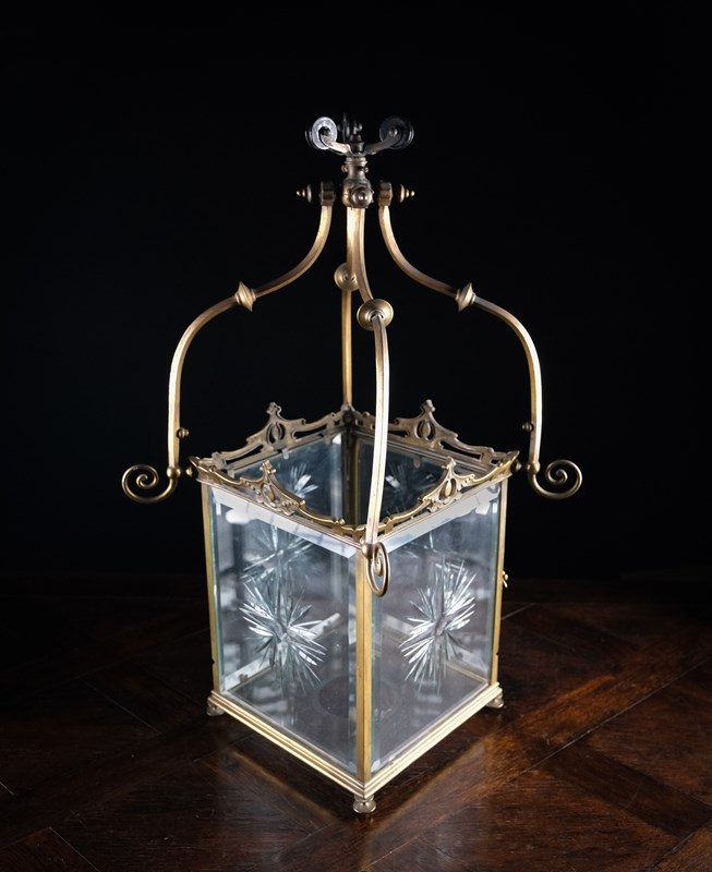 Large Brass & Cut Glass Hall Lantern, C.1910