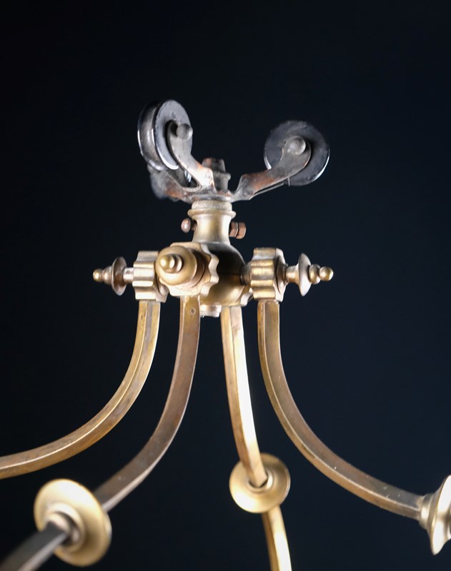 An exceptional brass and cut glass hall lantern of large proportions, c.1910. Complete with period rise and fall pully bracket (detachable).