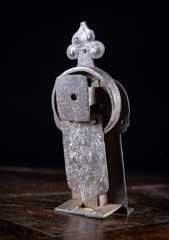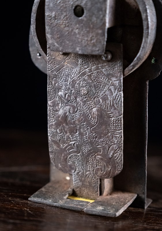 The lock is of good proportions with a fine grey/black patina. Excellent quality workmanship throughout with fine floral engraving.